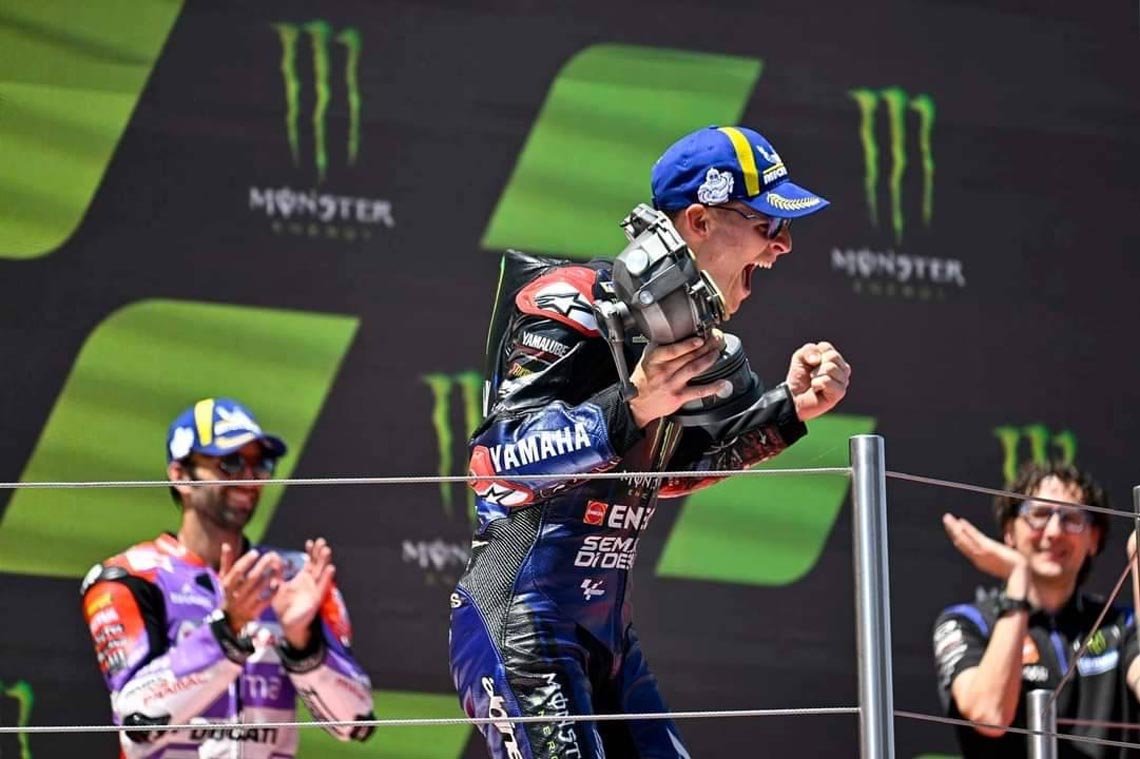 กวาร์ตาราโร คว้าชัยชนะที่ 2 ของปีให้กับตนเองที่ บาร์เซโลน่า ซึ่งเป็นสนามล่าสุดของ โมโตจีพี ส่งผลให้เขายืดระยะห่างในตารางคะแนนสะสมในตำแหน่งจ่าฝูงออกไปจาก อเลช เอสปาร์กาโร ถึง 22 แต้ม