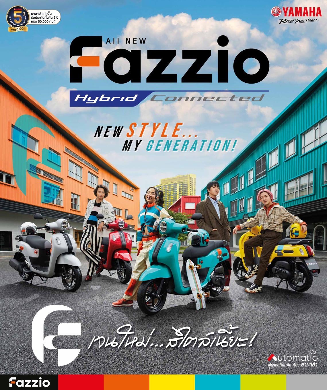 ไทยยามาฮ่ามอเตอร์ ตอกย้ำบทบาทความเป็นผู้นำรถจักรยานยนต์ออโตเมติกด้วย สร้างประวัติศาสตร์หน้าใหม่ของวงการรถจักรยานยนต์ไทยอีกครั้งด้วย “ALL NEW YAMAHA FAZZIO HYBRID CONNECTED” NEW STYLE…MY GENERATION! เจนใหม่..สไตล์เนี๊ยะ! ต่อยอดความนิยมของรถจักรยานยนต์ออโตเมติก (AT) ในประเทศไทย ตอบสนองความต้องการของผู้ขับขี่ในยุคปัจจุบันที่ถูกออกแบบมาให้เป็น ICON ใหม่ของรถจักรยานยนต์เพื่อวัยรุ่นบนท้องถนนเมืองไทย เรื่องความโดดเด่นของดีไซน์สไตล์แฟชั่น รวมถึงสมรรถนะการใช้งานที่ตอบโจทย์ด้วยการขับขี่ที่คล่องตัว ทั้งยังมีอัตราความประหยัดน้ำมันเชื้อเพลิงที่ยอดเยี่ยมพร้อมพรีเซนเตอร์สุดต๊าซ! “MILLI” และ “TILLY BIRDS” มัดใจลูกค้ากลุ่ม GEN Z โดดเด่นด้วยดีไซน์แฟชั่นสุดเทรนดี้ ผสานเทคโนโลยีอันทันสมัย Y-CONNECT ตอบโจทย์ไลฟ์สไตล์ผู้ขับขี่ยุคปัจจุบันภายใต้เครื่องยนต์บลูคอร์ 125 ซีซี ผสานระบบส่งกำลังแบบไฮบริด ตอกย้ำคุณภาพด้วยการรับประกัน 5 ปี หรือ 50,000 กิโลเมตร มาพร้อม 2 รุ่นทางเลือกในราคาเริ่มต้น 54,900 บาท