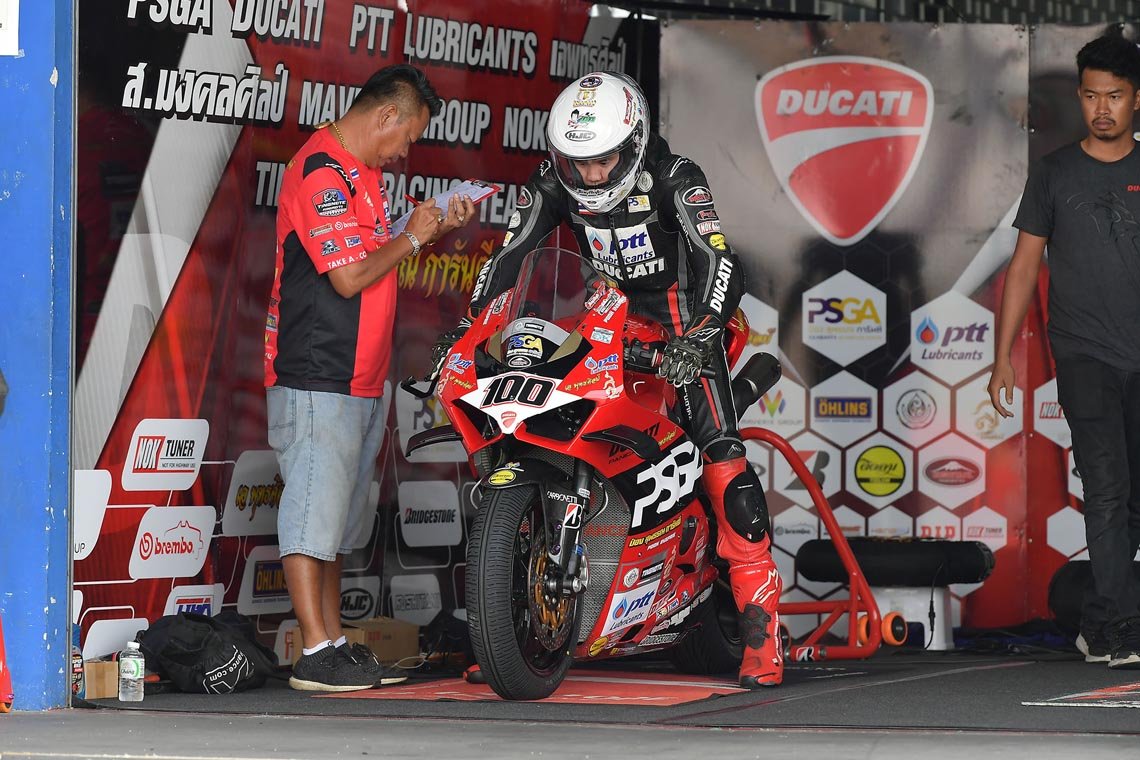 ขณะที่ "ซุป" อนุชา นาคเจริญศรี รองจ่าฝูงบนตารางคะแนนสะสมรั้งอันดับ 4 ในวันแรกตามหลัง 1.947 วินาที ตามด้วย "ซีเค" ชัยวิชิต นิสกุล จาก จอมไทย แฮปปี้ โฮม โมโตเร็กซ์ บริดจสโตน เรซซิ่ง ทีม ในอันดับ 5 ตามหลัง 1.974 วินาที ด้านผู้นำบนตารางคะแนนสะสมอย่าง "ติ๊งโน๊ต" ฐิติพงศ์ วโรกร จาก พีเอสจีเอ ดูคาติ พีทีที ลูบริแคนต์ นก จูนเนอร์ ติ๊งโน๊ต เรซซิ่ง ทีม รั้งอันดับ 6 ตามหลัง 2.548 วินาที