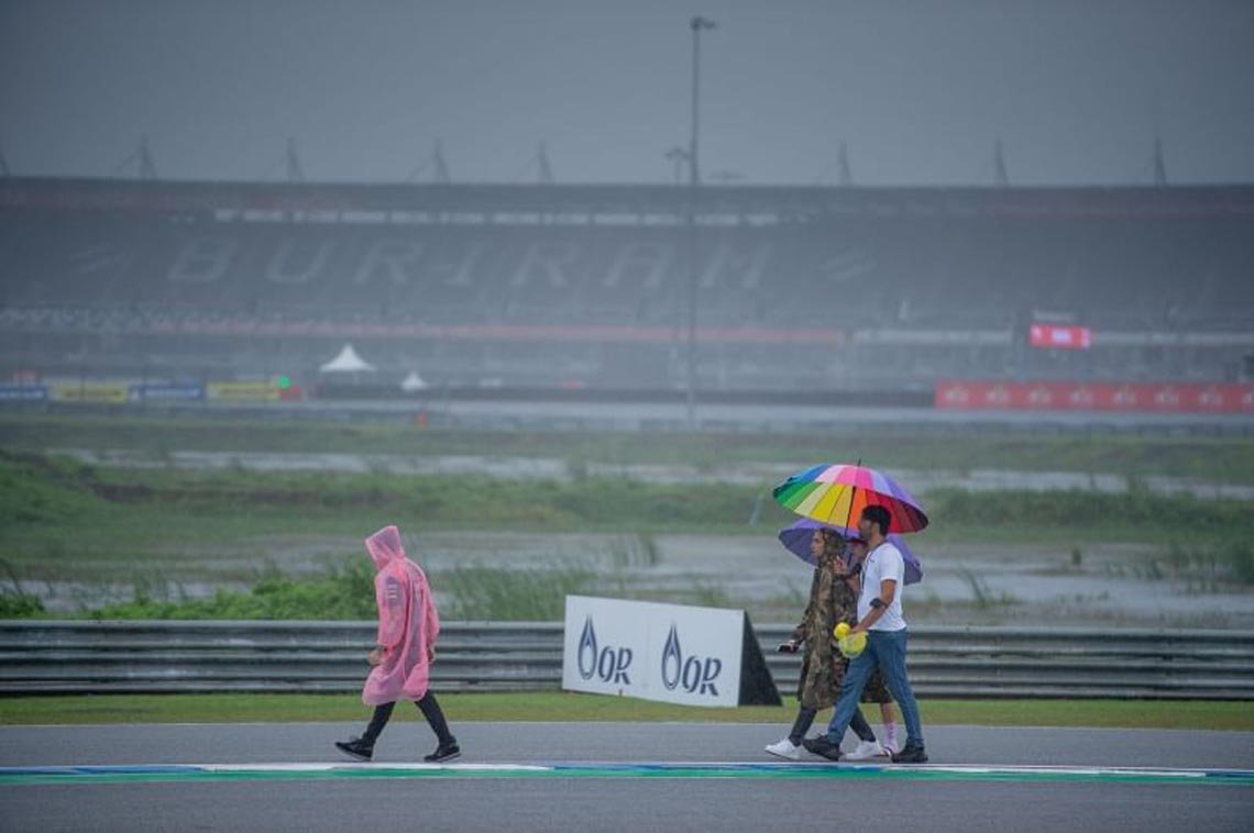 บรรยากาศโดยรวมมีฝนเทลงมาตลอดทั้งวันจากอิทธิพลของ “ไต้ฝุ่นโนรู” ซึ่งนักบิดระดับโลกร่วม 100 ชีวิต จากคลาสต่างๆได้แก่ โมโตจีพี, โมโตทู และ โมโตทรี ต่างก็ต้องทำการบ้านอย่างหนัก ด้วยการลงทำกิจกรรม Track Walk เดินสำรวจแทร็กของ สนามช้าง อินเตอร์เนชั่นแนล เซอร์กิต เพื่อเก็บข้อมูลสำหรับการแข่งขัน