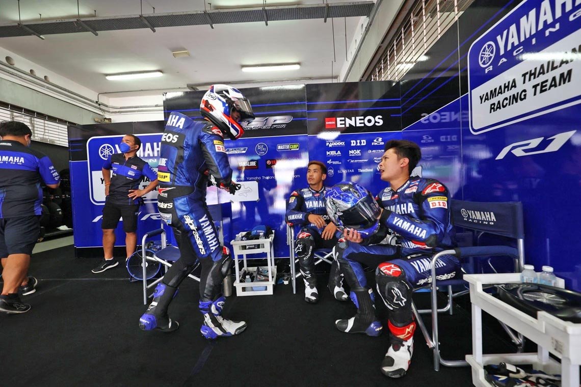 และเป็นทางด้าน อภิวัฒน์ วงศ์ธนานนท์ #24 ที่ทะยานจากกริดที่ 3 ขึ้นเป็นผู้นำ รวมถึง อนุภาพ ซามูล #500 ที่ขยับจากกริดที่ 10 ขึ้นมารั้งอันดับ 2 ก่อนที่ คู่หูไทยยามาฮ่า จะทิ้งห่างคู่ออกไปเรื่อยๆ