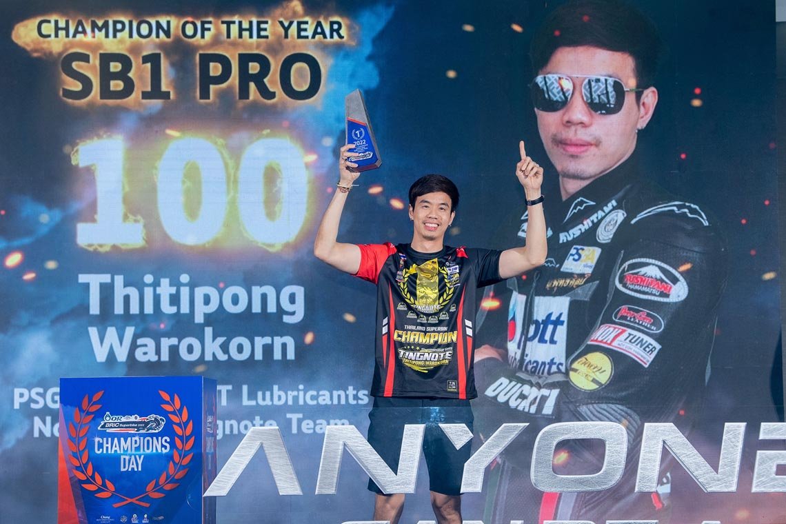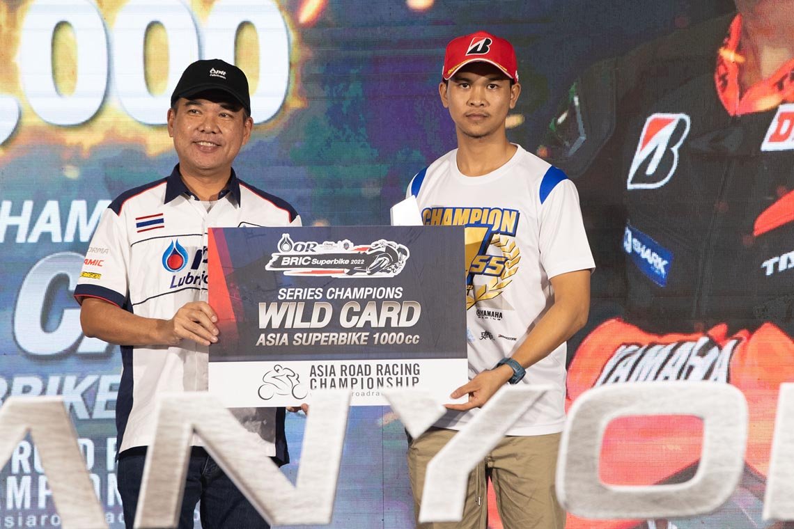 นักบิดที่สามารถคว้าแชมป์ประจำปีรุ่นใหญ่ที่สุดอย่าง ซูเปอร์ไบค์ 1,000 ซีซี เอสบี 1 โปร พร้อมรับสิทธิ์ไวลด์การ์ดไปแข่งขัน เอเชีย โร้ด เรซซิ่ง ได้แก่ ฐิติพงศ์ วโรกร จากทีม พีเอสจีเอ ดูคาติ พีทีที ลูบริแคนต์ นก จูนเนอร์ ติ๊งโน๊ต ส่วนซูเปอร์ไบค์ 1,000 ซีซี เอสบี 1 ได้แก่ พุทธินัฐ สินทรัพย์ จาก อิเดมิตสึ บริดจสโตน เรซซิ่ง ยามาฮ่า, เอสบี 2 ได้แก่ อาทิตย์ สถาปนรัตนกุล จาก ไบค์สตอรี่ บริดจสโตน อาท เน็กซ์เตอร์, เอสบี 3 ธนิต แก้รัมย์ จาก อีสต์ เอ็นเจที เรซซิ่ง ทีม