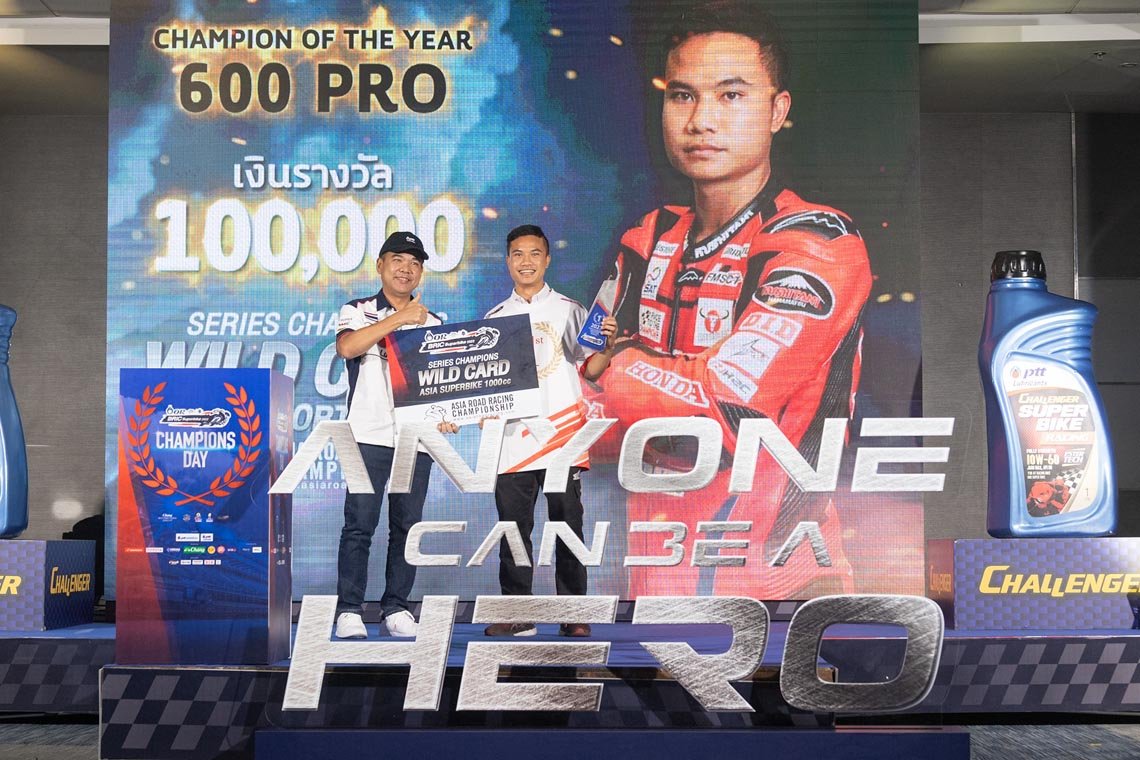 แชมป์ประจำปี ซูเปอร์สปอร์ต 600 ซีซี เอสเอส1 โปร และได้รับสิทธิ์ไวลด์การ์ดแข่งขันเอเชีย โร้ด เรซซิ่ง ได้แก่ นครินทร์ อธิรัฐภูวภัทร์ อดีตดาวบิดโมโตทรีจาก ฮอนด้า เรซซิ่ง ไทยแลนด์, ซูเปอร์สปอร์ต 600 ซีซี เอสเอส1 ได้แก่ ธุรกิจ บัวผา จากยามาฮ่า ไฮสปีด, เอสเอส2 ได้แก่ สุทธิภัทร พัชรีธร จาก สปีด 800 ยัวซ่า จีพี เรซซิ่ง ทีม