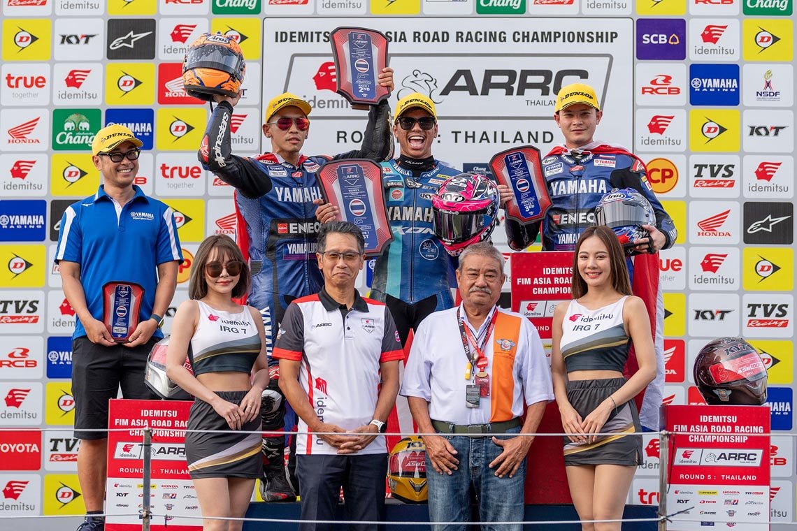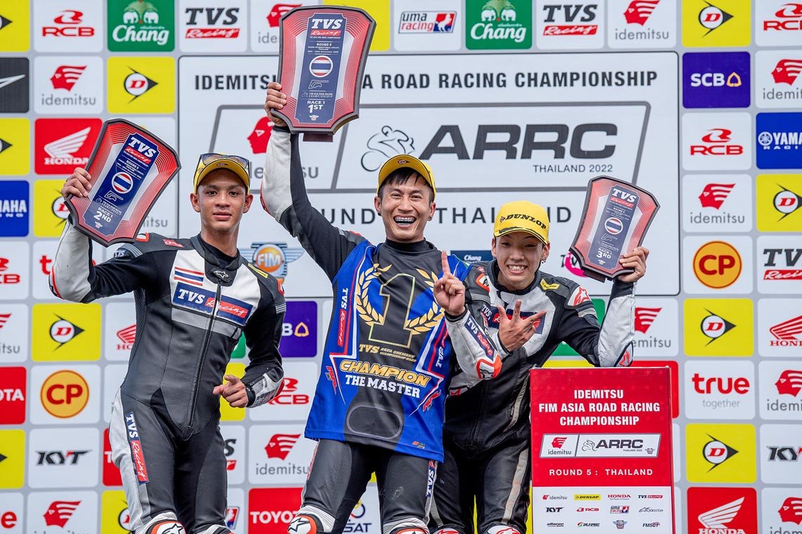 ทัพนักบิดไทยบิดระห่ำ พาเหรดคว้าโพเดียมในศึกสองล้อชิงแชมป์เอเชียสนามสุดท้ายเรซแรก โดย คู่หู ยามาฮ่า ไทยแลนด์ เรซซิ่ง ทีม อย่าง "ตี" อนุภาพ ซามูล และ "แสตมป์" อภิวัฒน์ วงศ์ธนานนท์ ควงคู่บิดคว้าอันดับ 2-3 ในรุ่น เอเชีย ซูเปอร์ไบค์ 1,000 ซีซี ขณะ "ชิพ" นครินทร์ อธิรัฐภูวภัทร์ จาก ฮอนด้า เรซซิ่ง ไทยแลนด์ ซิวอันดับ 2 ในรุ่น ซูเปอร์สปอร์ต 600 ซีซี ด้าน "เอ้" วรพงศ์ มาลาหวล เข้าวิน ทีวีเอส เอเชีย พร้อมเถลิงแชมป์ประจำปีไปครองอย่างยิ่งใหญ่ หลังจบเรซสุดเข้มข้น ที่ สนามช้าง อินเตอร์เนชั่นแนล เซอร์กิต จ.บุรีรัมย์