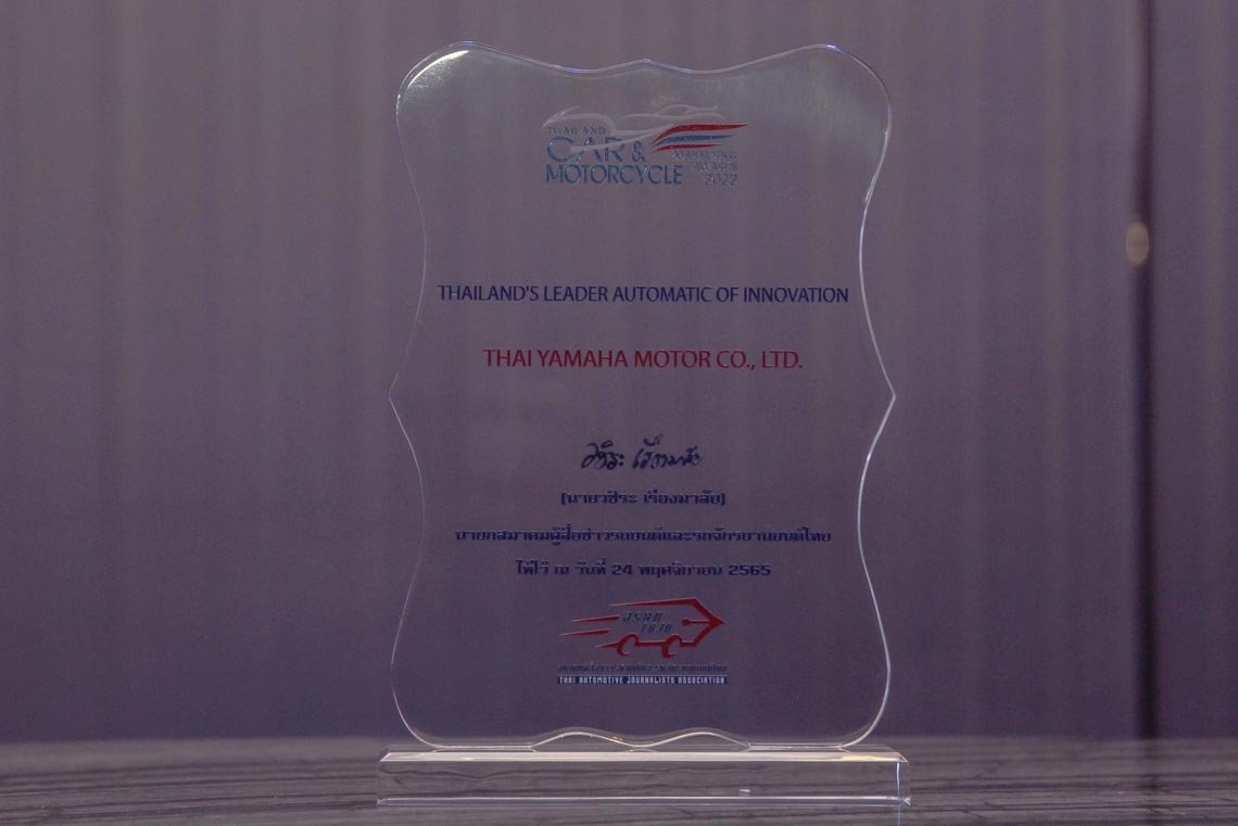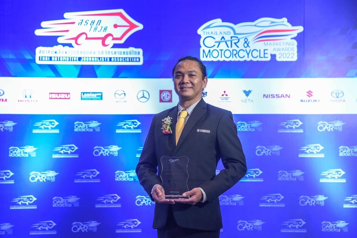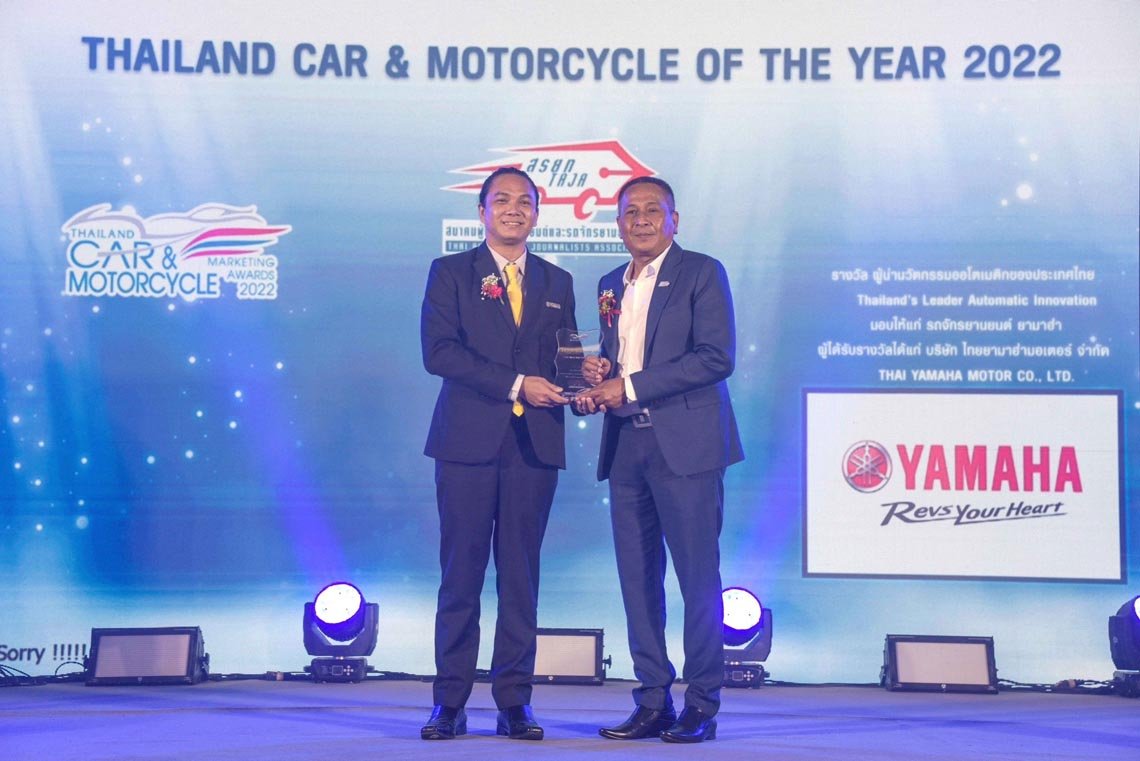 นายจิรภัทร สายเพชร ผู้จัดการทั่วไปฝ่ายการตลาดกลุ่มรถออโตเมติก และสนับสนุนการตลาดบริษัท ไทยยามาฮ่ามอเตอร์ จำกัด รับรางวัล Thailand’s Leader Automatic of Innovation (ผู้นํานวัตกรรมออโตเมติกของประเทศไทย) จากนายวชิระ เรืองมาลัย นายกสมาคมผู้สื่อข่าวรถยนต์และรถจักรยานยนต์ไทย ในงานประกาศรางวัล THAILAND CAR & MOTORCYCLE MARKETING AWARDS 2022 ที่จัดโดยสมาคมผู้สื่อข่าวรถยนต์และรถจักรยานยนต์ไทย โดยมีคณะสื่อมวลชนชั้นนำของประเทศไทยร่วมเป็นคณะพิจารณาผลรางวัล สำหรับรางวัล Thailand’s Leader Automatic of Innovation (ผู้นํานวัตกรรมออโตเมติกของประเทศไทย) ถือเป็นความภูมิใจของ บริษัท ไทยยามาฮ่ามอเตอร์ จำกัด ซึ่งเป็นผู้ริเริ่มในการผลิตและจำหน่ายรถจักรยานยนต์ระบบออโตเมติกในประเทศไทยและประสบความสำเร็จครองความเป็นผู้นำออโตเมติกมาตลอดระยะเวลา 20 ปีที่ผ่านมา