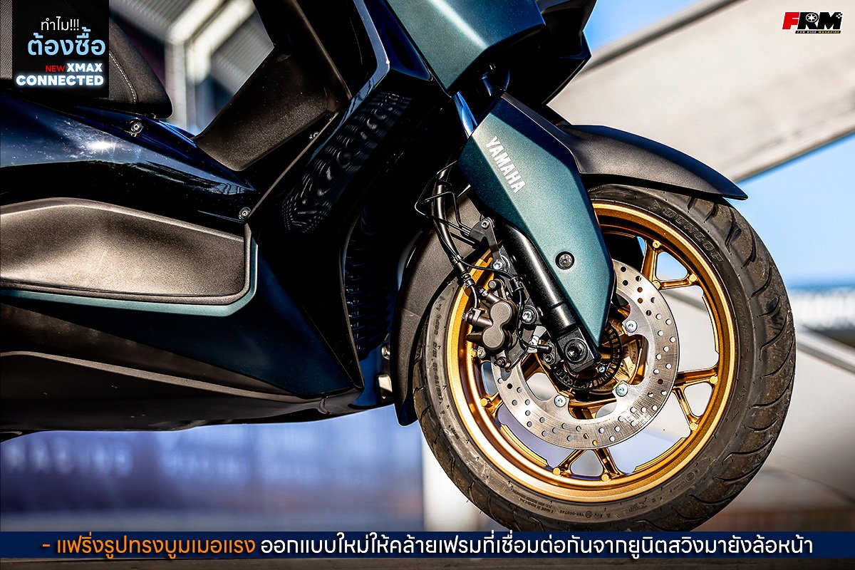 นอกจากนี้ NEW XMAX CONNECTED ยังครบครันด้วยออฟชั่นต่างๆ เหมือนที่มีมาไม่ว่าจะเป็น ระบบ TRACTION CONTROL SYSTEM ระบบป้องกันล้อหมุนฟรี, ช่อง DC Socket ช่องต่อไฟอุปกรณ์เสริม ขนาด 12V, Smart Key System กุญแจรีโมทอัจฉริยะ, ถังน้ำมันใหญ่ ขนาด 13 ลิตร, Tubeless ยางหน้า 15 นิ้ว และยางหลัง 14 นิ้ว พร้อมล้อแม็กน้ำหนักเบา, เฟรมแข็งแกร่งแต่น้ำหนักเบา พร้อมโช้คหน้าเทเลสโคปิคแบบรถสปอร์ตขนาด 33 มม.