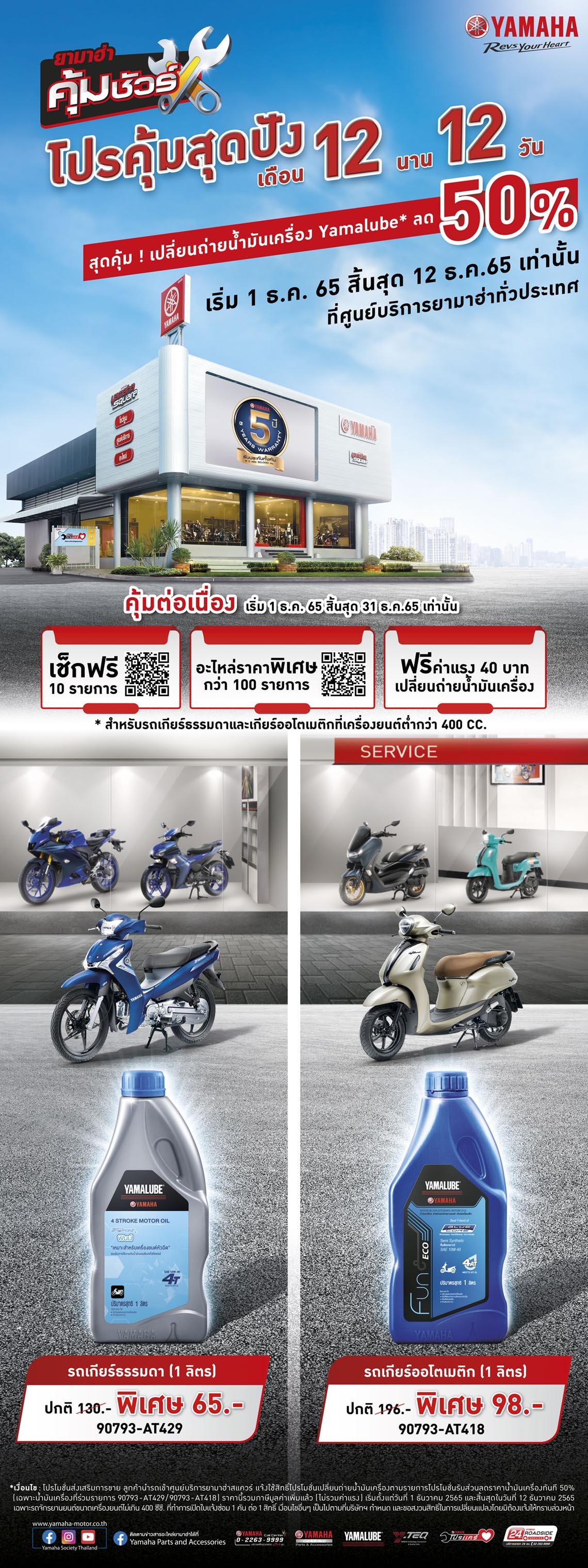 เริ่ม 1 ธ.ค. 65 สิ้นสุด 12 ธ.ค. 65 เท่านั้น ที่ศูนย์บริการยามาฮ่าทั่วประเทศ