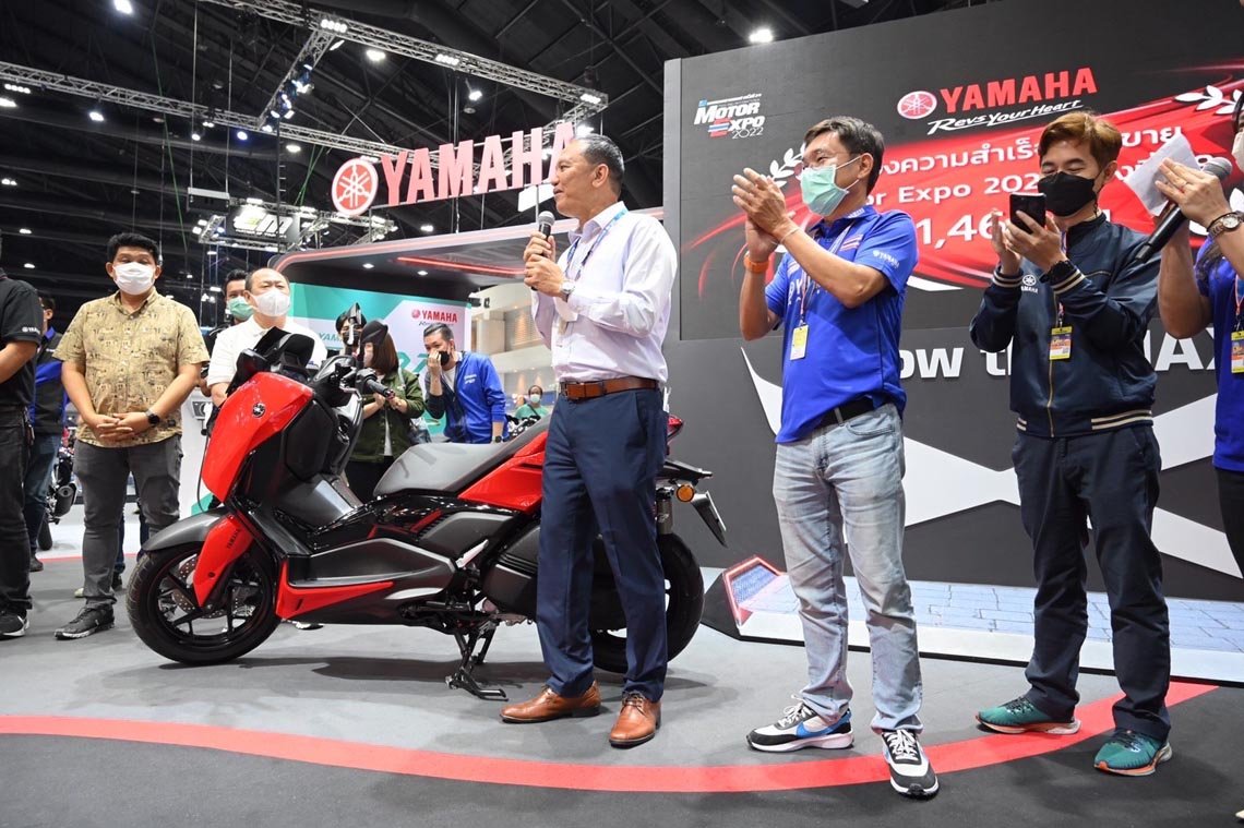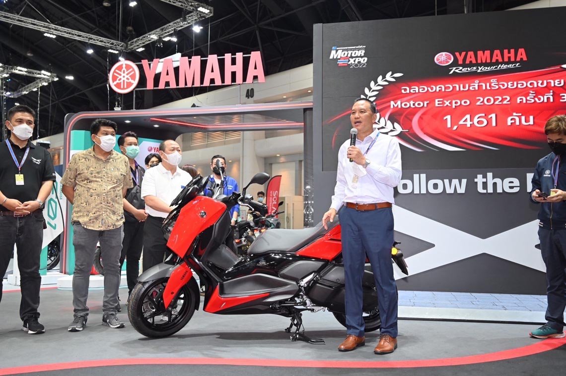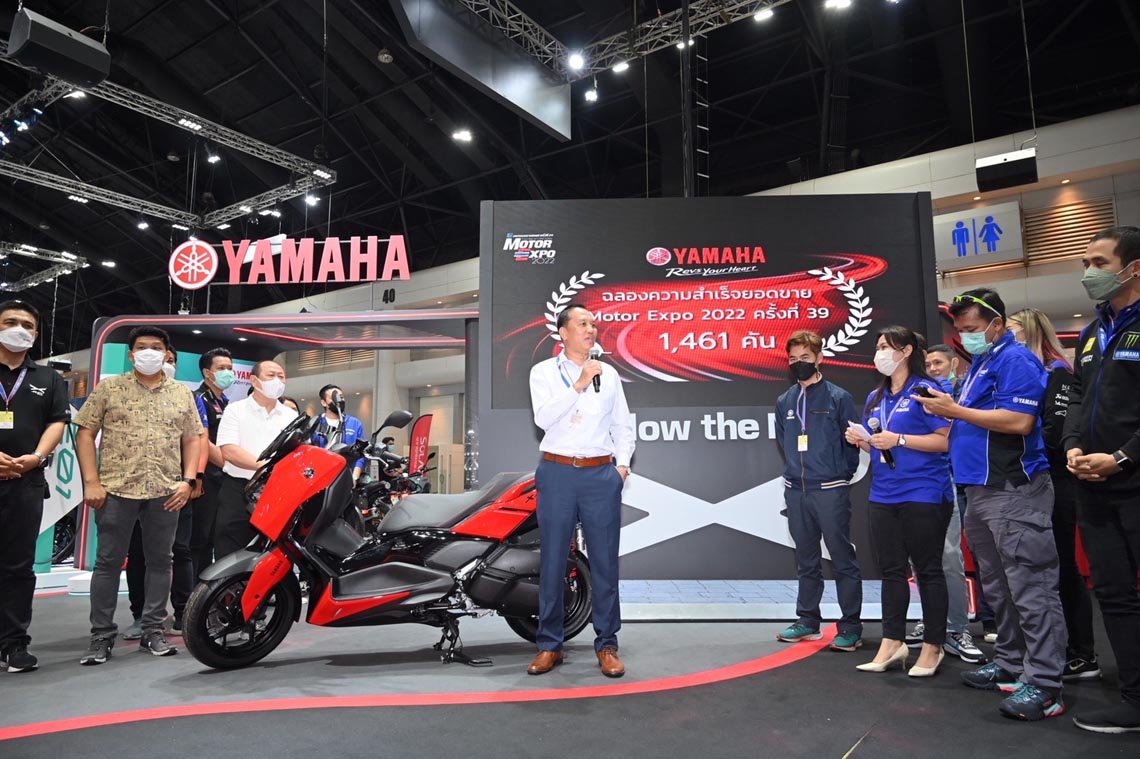 นายภาณุพล กิตติคำรณ รองผู้จัดการใหญ่ด้านการขายและการตลาด บริษัท ไทยยามาฮ่ามอเตอร์ จำกัด ถ่ายภาพร่วมกับพนักงาน และร้านผู้จำหน่ายรถจักรยานยนต์ยามาฮ่า เขตกรุงเทพฯ และปริมณฑล ในการร่วมฉลองปิดฉากมหกรรมยานยนต์ครั้งที่ 39 หรือ มอเตอร์เอ็กซ์โป 2022 โดยในปีนี้ยามาฮ่านำรถจักรยานยนต์ทุกรุ่นมาร่วมจัดแสดงและจำหน่ายอย่างครบครัน และสามารถสร้างยอดจำหน่ายส่งท้ายปีถล่มทลายมากถึง 1,461 คัน โดยมี New YAMAHA XMAX Connected เป็นพระเอกชูโรงกับยอดจำหน่าย 855 คัน