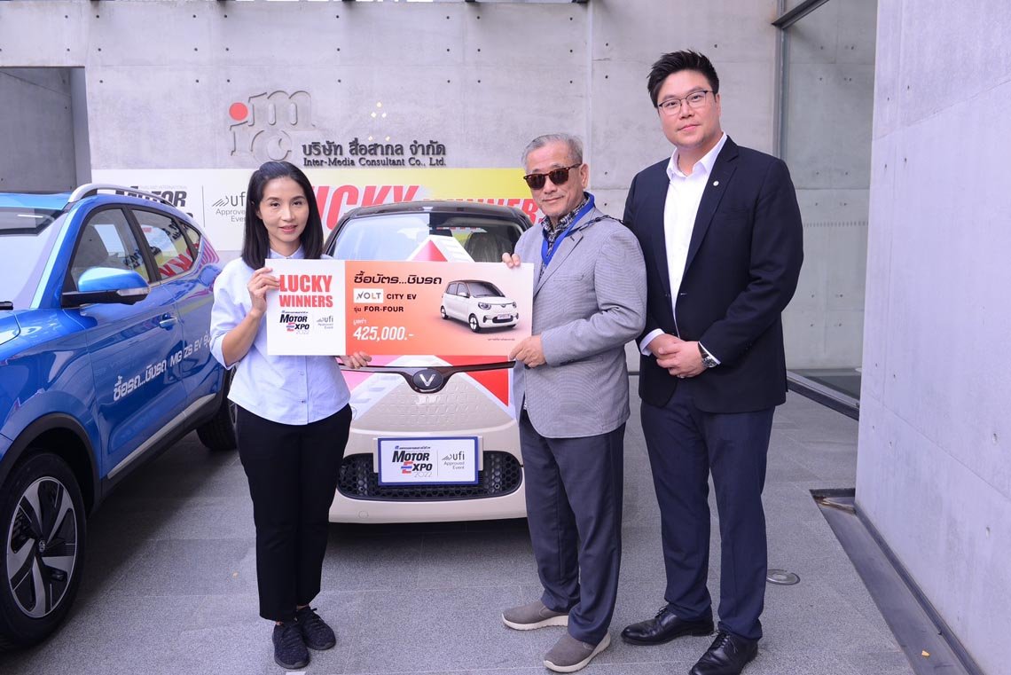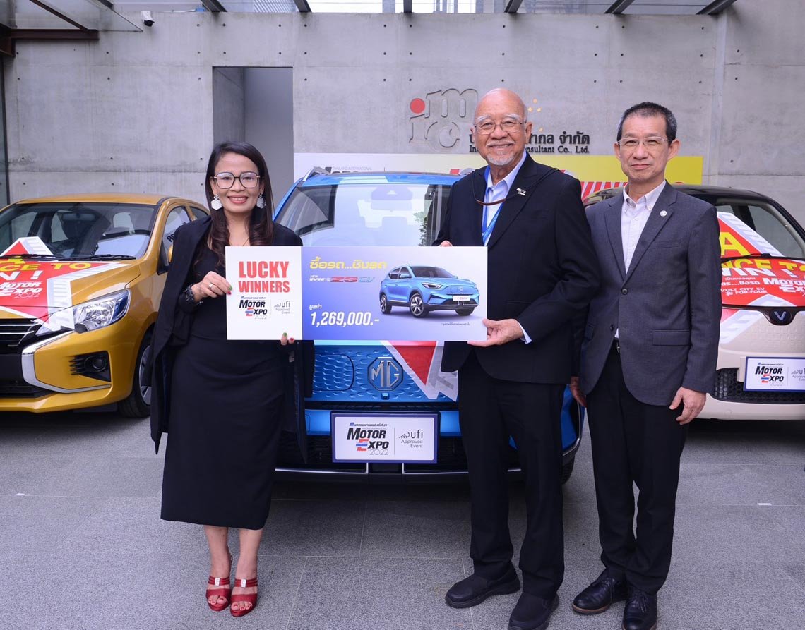 ขวัญชัย ปภัสร์พงษ์ ประธานจัดงานฯ มอบรางวัลรายการ “ซื้อรถ...ชิงรถ” NEW MG ZS EV รุ่น X มูลค่า 1,269,000 บาท ผู้ได้รับรางวัล ได้แก่ ศิริวรรณ สุดา จ. นนทบุรี