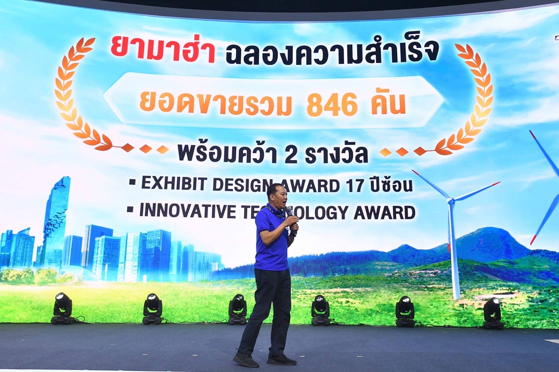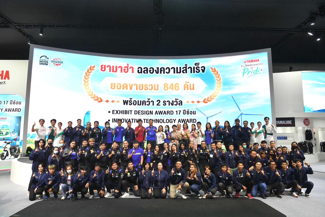 นายภาณุพล กิตติคำรณ รองผู้จัดการใหญ่ด้านการขายและการตลาด พร้อมพนักงานบริษัท ไทยยามาฮ่ามอเตอร์ จำกัด ถ่ายภาพร่วมกับร้านผู้จำหน่ายรถจักรยานยนต์เขตกรุงเทพฯ และปริมณฑล พร้อมฉลองยอดจำหน่ายรถจักรยานยนต์ยามาฮ่าในงานมอเตอร์โชว์ครั้งที่ 44 โดยในปีนี้ยามาฮ่ามียอดจำหน่ายรถจักรยานยนต์สูงสุดจำนวน 846 คัน ซึ่งภายในงานครั้งนี้ยามาฮ่าจัดทัพรถจักรยานยนต์มาจัดแสดงครบทุกรุ่น พร้อมโปรโมชั่นสุดพิเศษ รวมถึงผลิตภัณฑ์ยามาลู้ป เครื่องแต่งกายและอุปกรณ์ตกแต่ง แบบครบครัน