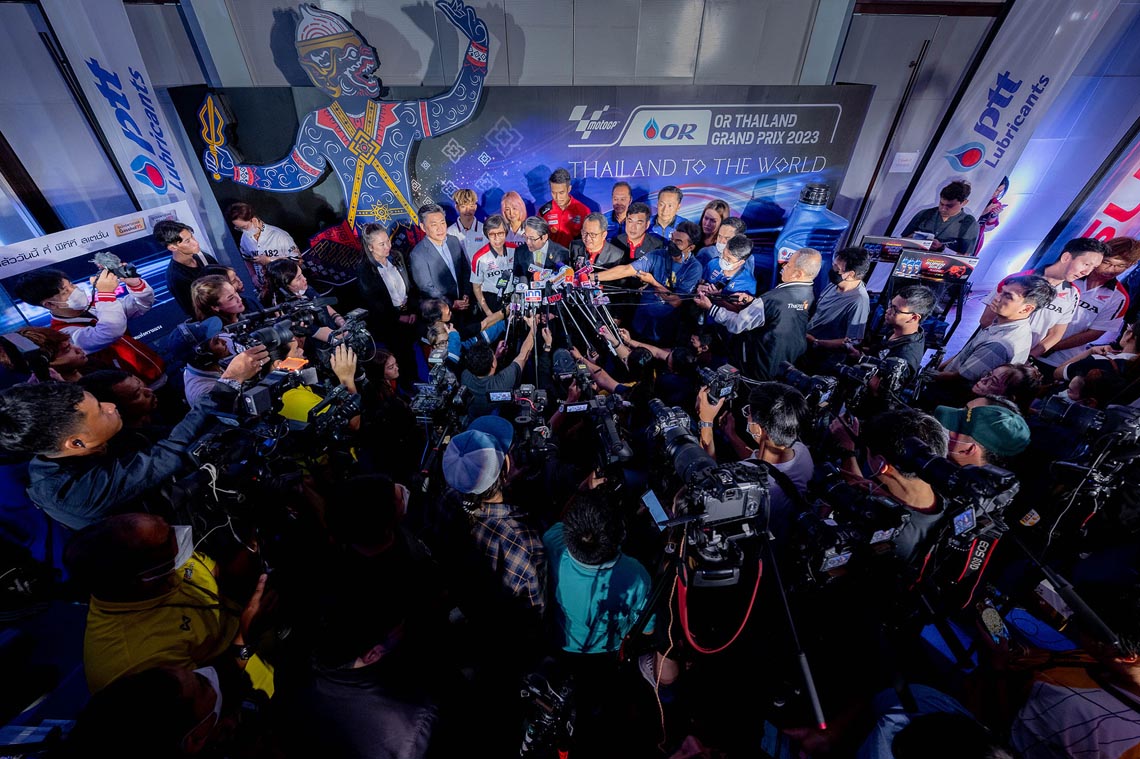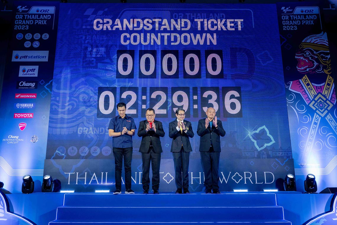 รัฐบาลไทยจับมือภาคเอกชน แถลงข่าวการเป็นเจ้าภาพจัดการแข่งขันศึกสองล้อรายการใหญ่ที่สุดของโลก โมโตจีพี สนามประเทศไทย ภายใต้ชื่อ“โออาร์ ไทยแลนด์ กรังปรีซ์ 2023” ยืนยันความพร้อมทุกด้าน แก้ไขจุดด้อย ชูจุดเด่น สู่โมโตจีพีที่ดีที่สุดในโลก ปักหมุดสู่เบอร์หนึ่งในใจแฟนความเร็ว ชี้หลังผ่านวิกฤตโควิด-19 คาดผู้ชมทะลักสู่สนามเพิ่มขึ้น อัดแน่นทุกสแตนด์เช่นเดิม พร้อมเปิดขายบัตรเข้าชมอย่างเป็นทางการผ่านช่องทางออนไลน์ไปทั่วโลก สร้างสถิติใหม่ บัตรแกรนด์สแตนด์จำหน่ายหมดภายใน 2.29 นาที
