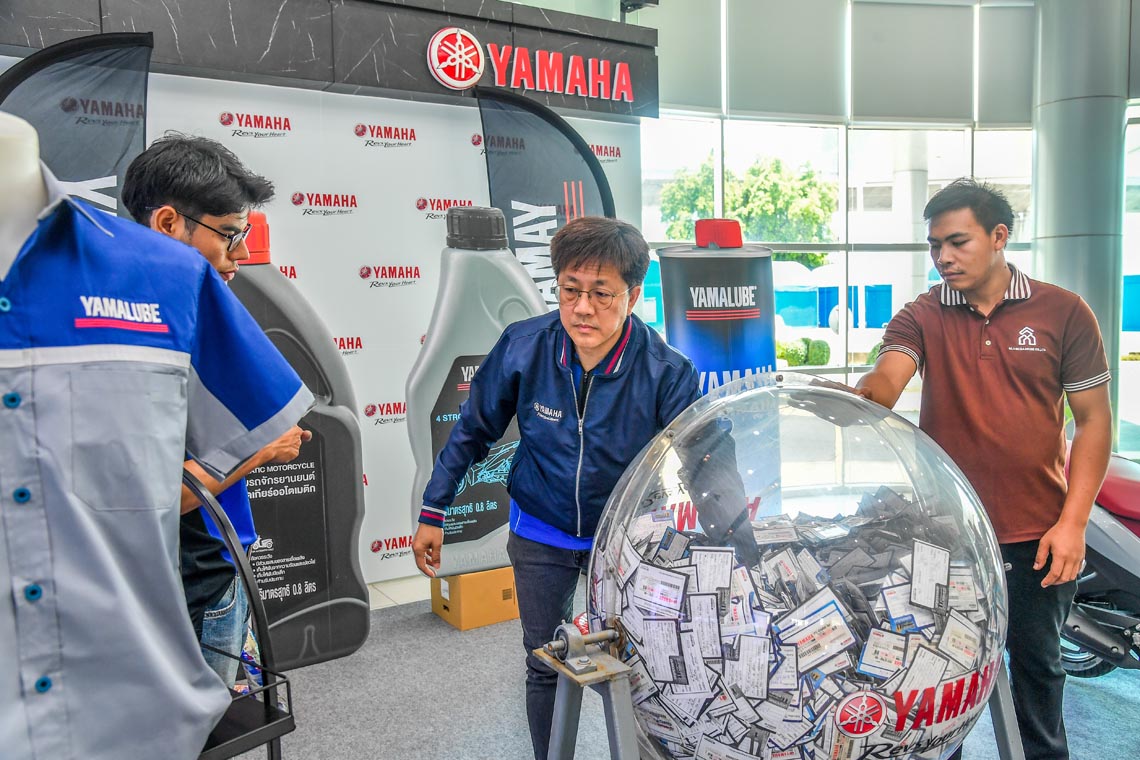 คุณภาณุพล กิตติคำรณ รองผู้จัดการใหญ่ฝ่ายขาย บริการและอะไหล่ บริษัท ไทยยามาฮ่ามอเตอร์ จำกัด ให้เกียรติเป็นประธานในพิธี พร้อมด้วย คุณมิตรชัย คงกิตติกุล ผู้จัดการทั่วไปฝ่ายอะไหล่ และทีมผู้บริหารฝ่ายอะไหล่ ร่วมจับรางวัลผู้โชคดีจากแคมเปญ “อะไหล่แท้ แจกจริง ปีที่ 11” ครั้งที่ 2 ซึ่งเป็นแคมเปญที่ยามาฮ่าจัดขึ้นเพื่อมอบโชคให้กับร้านซ่อมรถจักรยานยนต์อิสระที่ได้ซื้อสินค้ายามาฮ่า อะไหล่แท้ หรือ วายเท็ค, น้ำมันเครื่องยามาลู้ป, อุปกรณ์ตกแต่ง และเสื้อผ้าเครื่องแต่งกาย ให้ได้ลุ้นรางวัลรถจักรยานยนต์ยามาฮ่ารุ่น FINN ล้อซี่ลวด/สตาร์ทมือ (2022), สร้อยคอทองคำหนัก 2 สลึง, น้ำมัน Yamalube, บัตรของขวัญ โลตัส, เสื้อช็อปช่างยามาลู้ป โดยของรางวัลตลอดทั้งแคมเปญในครั้งนี้มีจำนวน 843 รางวัล รวมเป็นมูลค่ากว่า 1.5 ล้านบาท