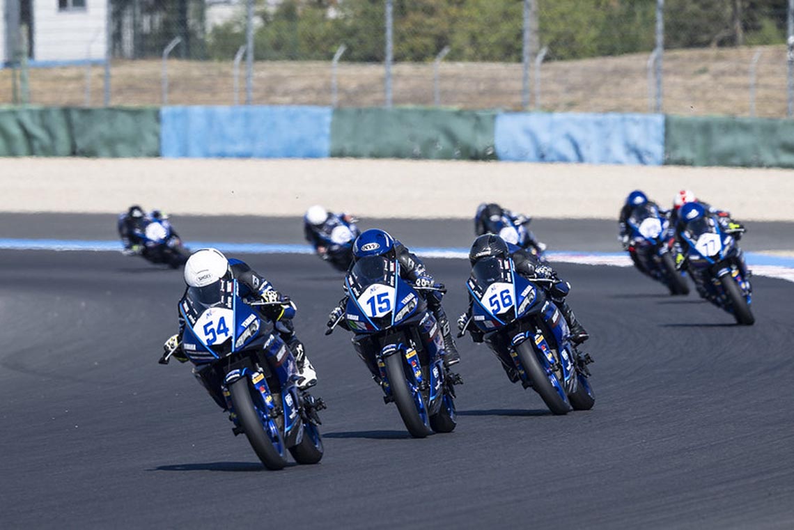 การแข่งขันรถจักรยานยนต์ทางเรียบดาวรุ่งชิงแชมป์ยุโรป รายการ Yamaha R3 bLU cRU European Championship 2023 สนามสุดท้าย ดวลความเร็ว 2 เรซเมื่อวันเสาร์ที่ 9 กันยายนที่ผ่านมา ที่ เซอร์กิต แม็กนีย์-คูร์ส ประเทศฝรั่งเศส