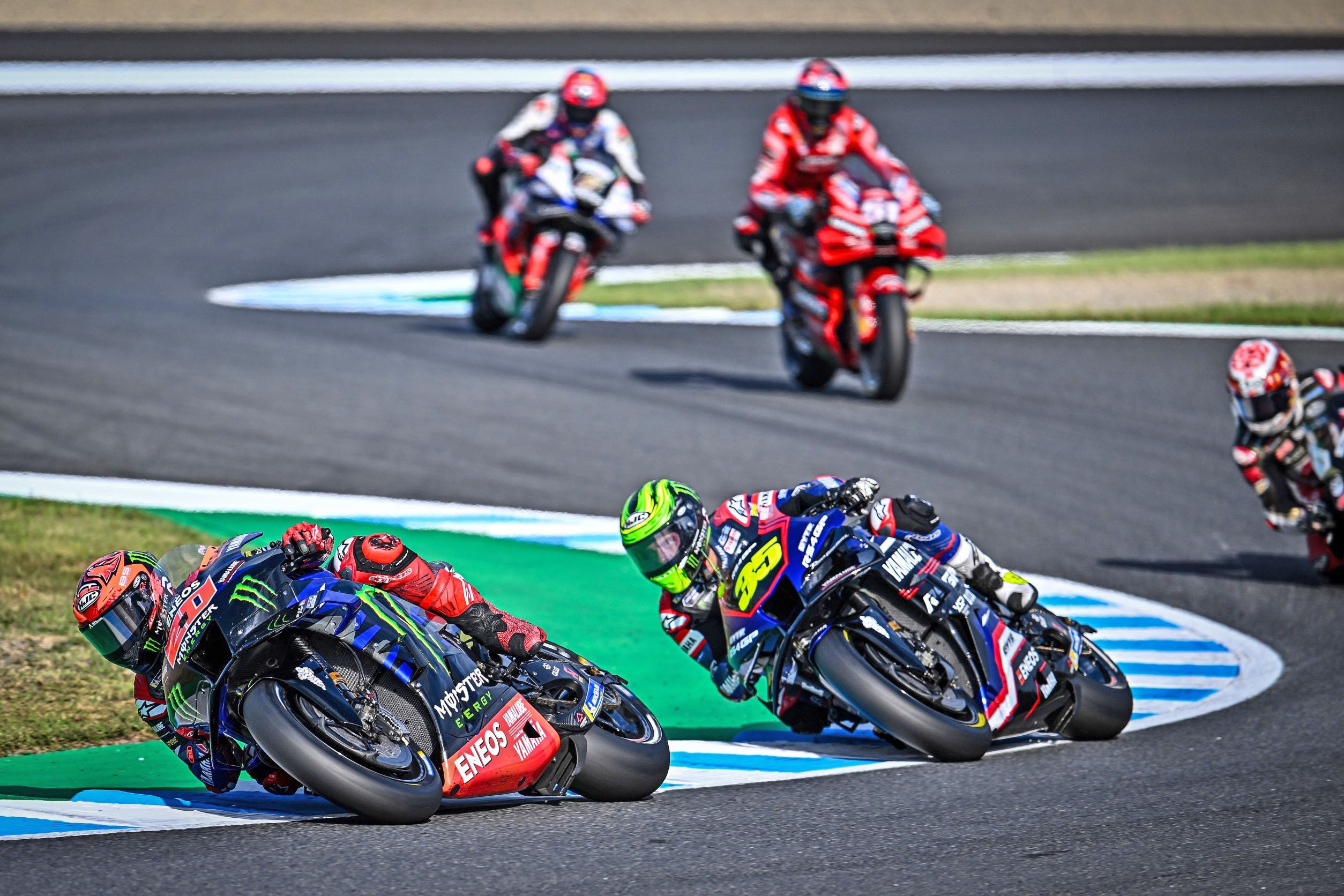"เอลดิอาโบล" ฟาบิโอ กวาร์ตาราโร ยอดนักบิดเฟรนช์จาก มอนสเตอร์ ยามาฮ่า หวังแก้ไขจังหวะออกตัวในศึก โมโตจีพี สนาม 14 รายการ เจแปนีส กรังด์ปรีซ์ ในวันอาทิตย์ที่ โมเตกิ หลังคว้าอันดับ 15 รอบ สปรินต์ เมื่อวันเสาร์ที่ผ่านมา