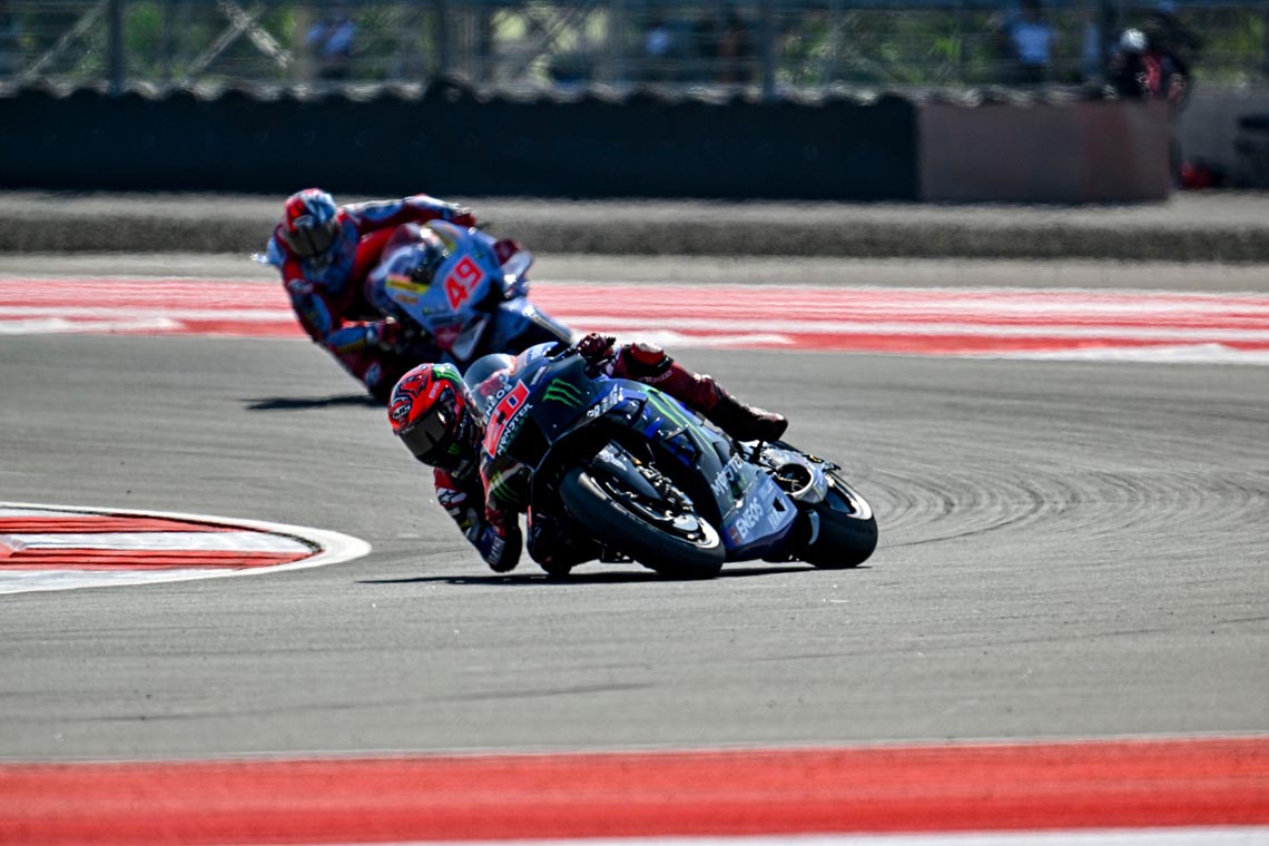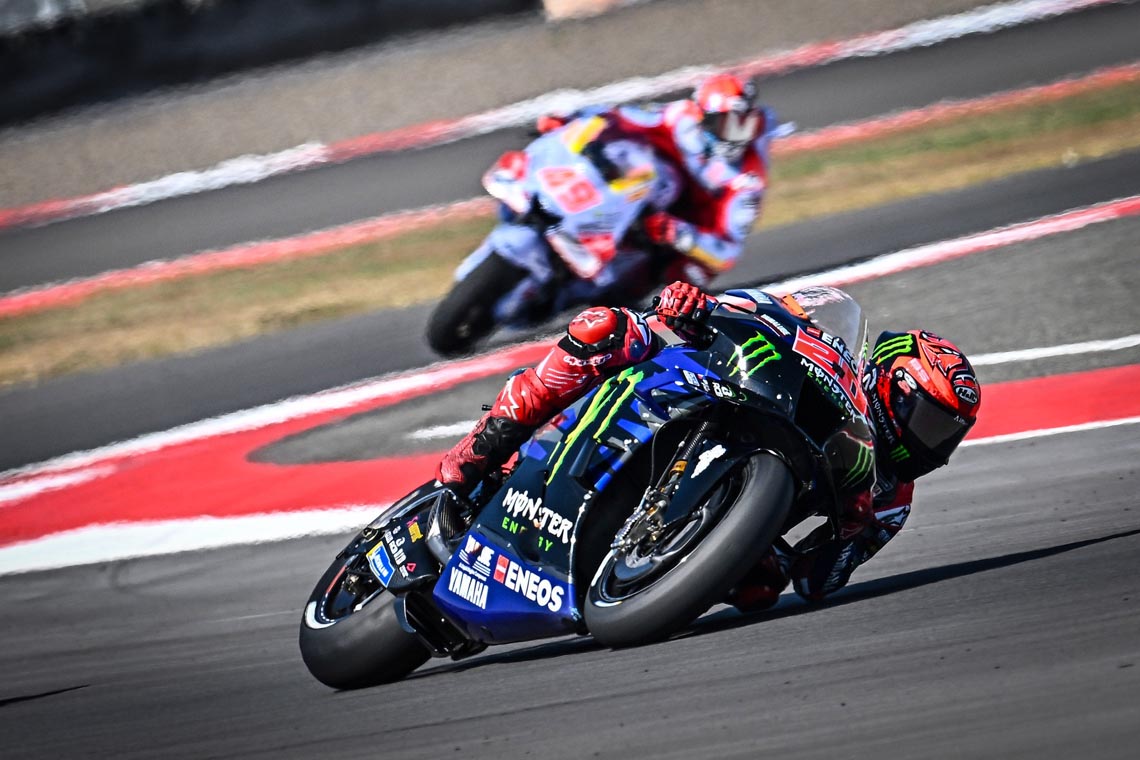 "เอลดิอาโบล" ฟาบิโอ กวาร์ตาราโร ยอดนักบิดเฟรนช์จาก มอนสเตอร์ ยามาฮ่า คัมแบ็กสู่ผลงานยอดเยี่ยมอีกครั้ง หลังบิดคว้าอันดับ 5 ในศึก โมโตจีพี สนาม 15 รายการ อินโดนีเซียน กรังด์ปรีซ์ ในรอบสปรินต์เมื่อวันเสาร์ที่ผ่านมา ที่ มันดาลิกา ประเทศอินโดนีเซีย