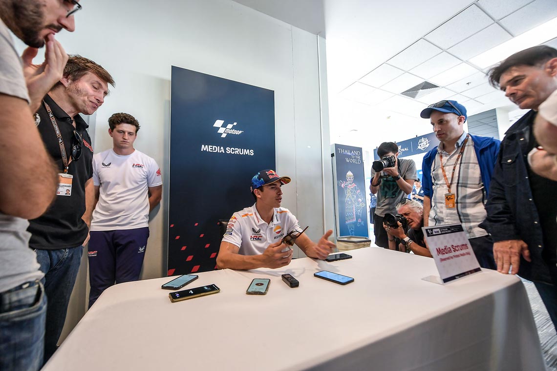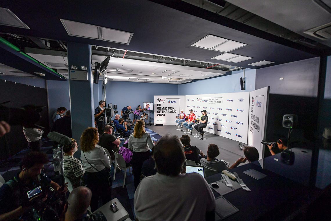 ยอดนักบิดชื่อดังในศึก โมโตจีพี นำโดยแชมป์โลกอย่าง ฟรานเชสโก้ บันยาญ่า นักบิดอิตาเลียนจาก ดูคาติ และคู่แข่งคนสำคัญชาวสแปนิชอย่าง ฮอร์เก มาร์ติน และ มาร์โก เบซเซ็คคี รวมถึงสตาร์ชาวไทยอย่าง “ก้อง” สมเกียรติ จันทรา จาก อิเดมิตสึ ฮอนด้า ทีม เอเชีย ร่วมแถลงข่าวก่อนแข่ง หลังลงสำรวจแทร็ก สนามช้าง อินเตอร์เนชั่นแนล เซอร์กิต จ.บุรีรัมย์ ก่อนลงดวลช่วงสำคัญในการลุ้นแชมป์โลกสุดสัปดาห์นี้ในศึก โออาร์ ไทยแลนด์ กรังด์ปรีซ์ ขณะแฟนชาวไทยตื่นตาตื่นใจรอชมเรซระดับโลกในบ้านเกิด