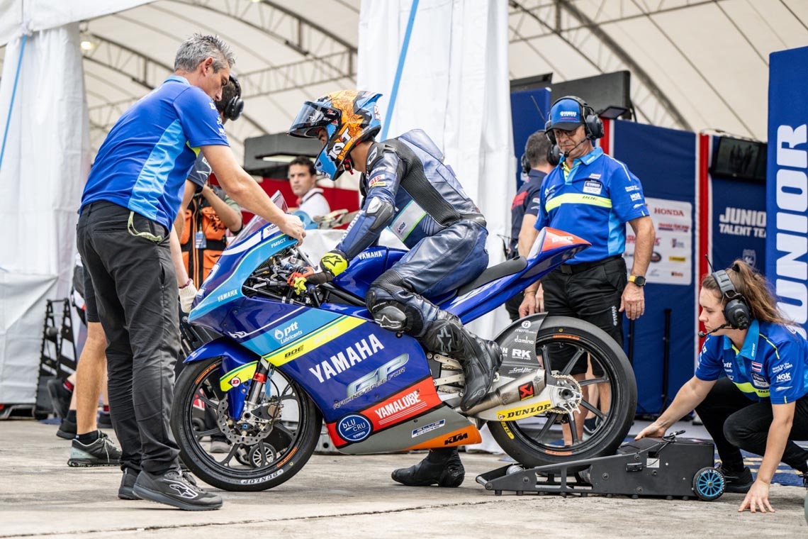 “ไอเดีย” กฤตภัทร เขื่อนคำ ยอดนักบิดดาวรุ่งชาวไทยจาก ยามาฮ่า ไทยแลนด์ เรซซิ่ง - โบย ประเดิมลงบิดในศึก โมโตทรี เวิลด์ แชมเปียนชิพ ครั้งแรกในชีวิตที่ สนามช้างฯ จ.บุรีรัมย์ เมื่อวันศุกร์ที่ผ่านมา ด้วยการทำงานตามขั้นตอนเพื่อหา “ฟีลลิ่ง” การขับขี่และเซ็ตติ้งร่วมกับทีมช่าง เจ้าตัวมั่นใจยกระดับความเร็วขึ้นได้ในวันเสาร์นี้