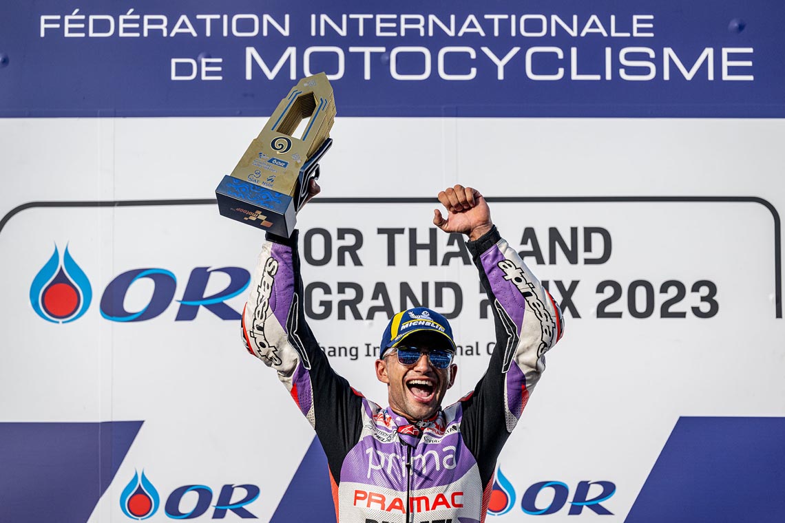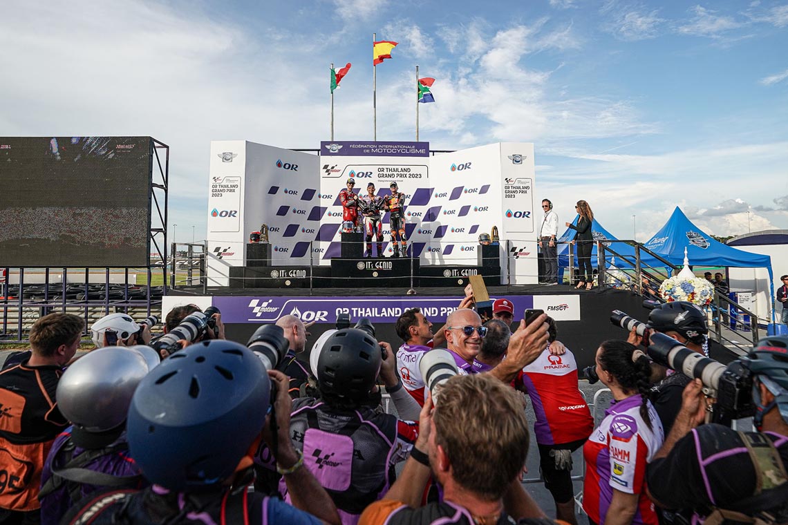 สุดยอดมอเตอร์สปอร์ต 2 ล้อโลก “โมโตจีพี” ดวลความเร็วสนาม 17 รายการ “โออาร์ ไทยแลนด์ กรังด์ปรีซ์” สุดเดือดบนแผ่นดินไทย ยอดผู้ชมทะลุ 1.79 แสน ฮอร์เก มาร์ติน นักบิดสแปนิชจาก พรีม่า พรามัค เรซซิ่ง ระเบิดฟอร์มเหมาชัยชนะในรุ่น โมโตจีพีไปครอง ไล่จี้ ฟรานเชสโก้ บันยาญ่า แชมป์โลกชาวอิตาเลียนจาก ดูคาติ เหลือเพียง 13 คะแนน ด้าน“ก้อง” สมเกียรติ จันทรา นักบิดไทยจาก อิเดมิตสึ ฮอนด้า ทีม เอเชีย สร้างประวติศาสตร์คว้าโพเดียมในบ้านเกิดอย่างยิ่งใหญ่เป็นครั้งแรก พร้อมสร้างสถิติเป็นนักบิดไทยคนไทยในประวัติศาสตร์ที่ขึ้นโพเดียมใน “โฮมกรังด์ปรีซ์” ได้สำเร็จ