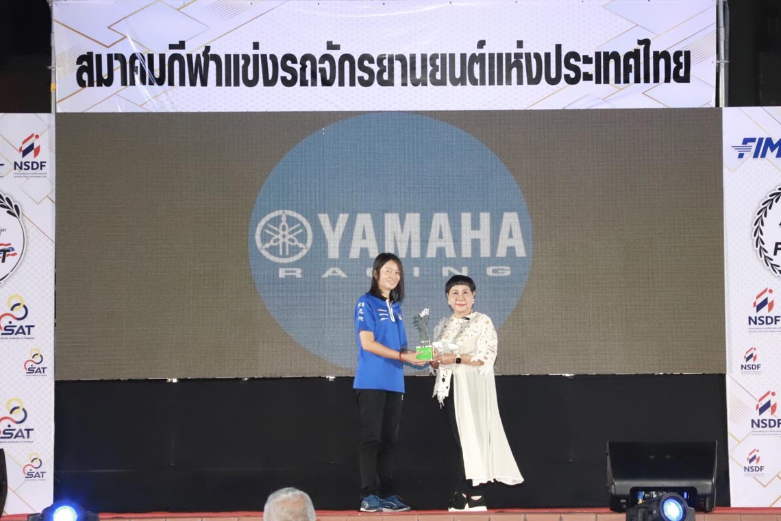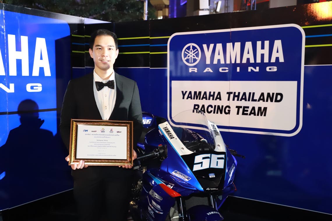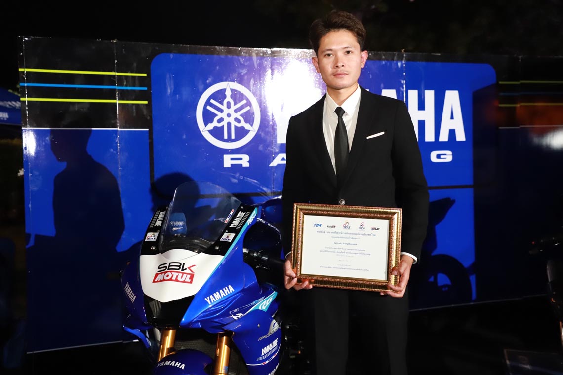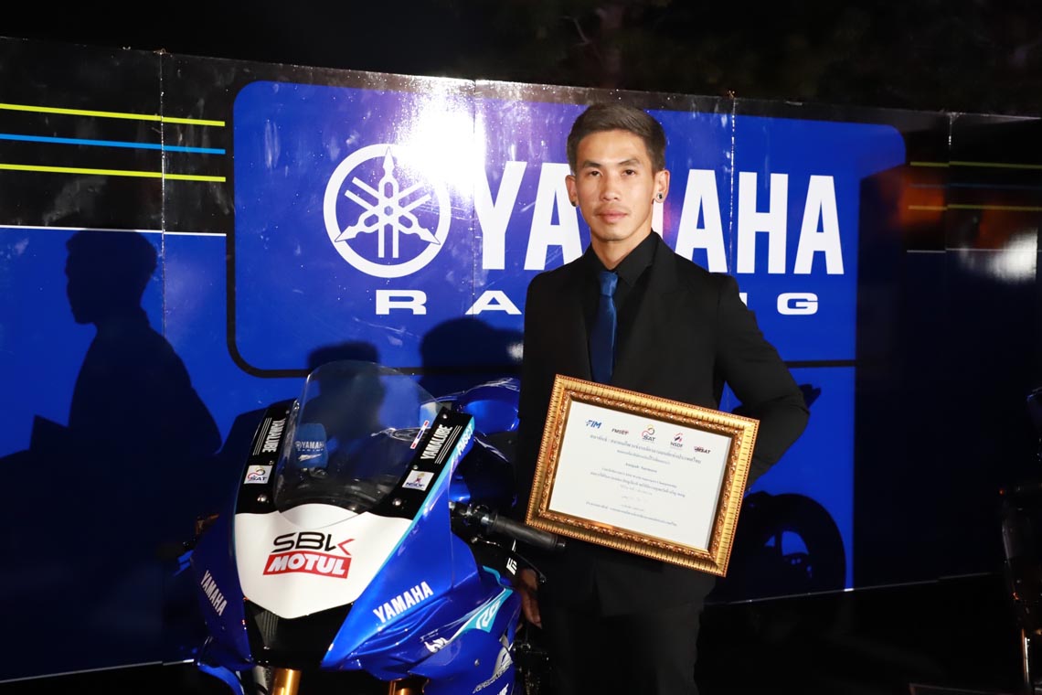 นางสาวกรวรรณ ปิติไทย ผู้จัดการกลุ่มงานวางแผนและกิจกรรม ฝ่ายกีฬายานยนต์ นายวิชัย ชัยประภา ผู้เชี่ยวชาญพิเศษแผนกกีฬายานยนต์ พร้อมนักแข่งในสังกัด ยามาฮ่า ไทยแลนด์ เรซซิ่งทีม นำทีมโดย อนุภาพ ซามูล อภิวัฒน์ วงศ์ธนานนท์ 2 นักแข่งที่ลงทำการแข่งขันในรายการ World SuperBike Championship รัฐพงษ์ วิไลโรจน์ นักแข่งในรายการ Asia Road Racing Championship กฤตภัทร เขื่อนคำ ธุรกิจบัวผา สองนักแข่งในรายการ R3 bLU cRU european cup พร้อมดาวรุ่งจาก R3 bLU cRU Thailand ที่ได้ลงทำการแข่งขันในระดับยุโรป ขึ้นรับรางวัลจาก นายธงชัย วงษ์สวรรค์ ประธานสมาพันธ์กีฬาแข่งขันรถจักรยานยนต์แห่งประเทศไทย หรือ FMSCT ในการที่ยามาฮ่าสนับสนุนและพัฒนาวงการการแข่งขันรถจักรยานยนต์ และสงนักแข่งไปสร้างชื่อเสียงให้กับประเทศใทยในการลงทำการแข่งขันรถจักรยานยนต์ทางเรียบระดับนานาชาติ