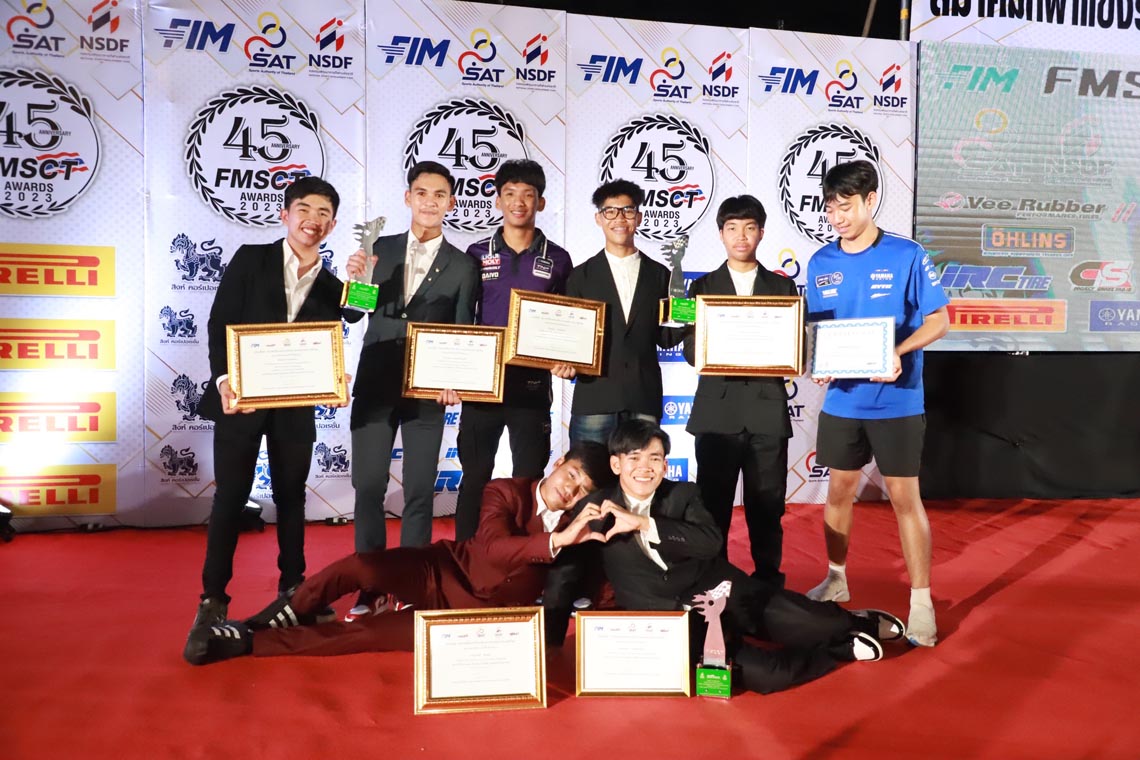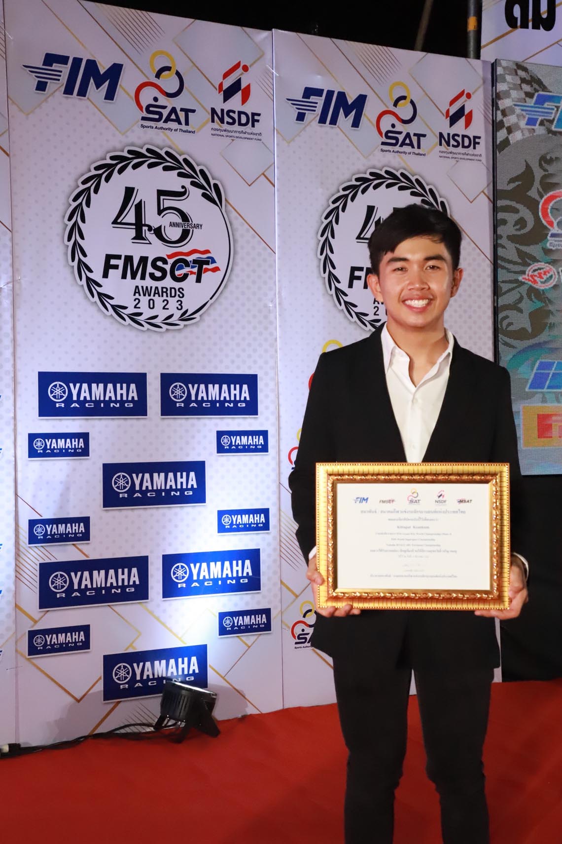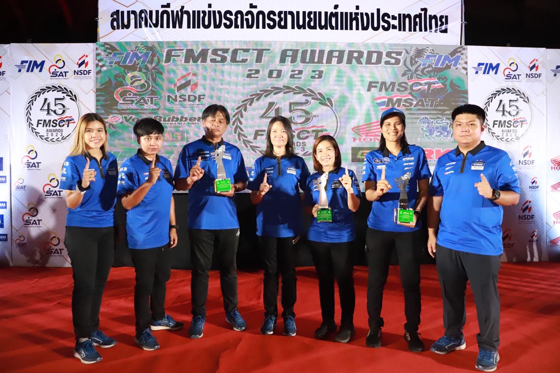 นางสาวกรวรรณ ปิติไทย ผู้จัดการกลุ่มงานวางแผนและกิจกรรม ฝ่ายกีฬายานยนต์ นายวิชัย ชัยประภา ผู้เชี่ยวชาญพิเศษแผนกกีฬายานยนต์ พร้อมนักแข่งในสังกัด ยามาฮ่า ไทยแลนด์ เรซซิ่งทีม นำทีมโดย อนุภาพ ซามูล อภิวัฒน์ วงศ์ธนานนท์ 2 นักแข่งที่ลงทำการแข่งขันในรายการ World SuperBike Championship รัฐพงษ์ วิไลโรจน์ นักแข่งในรายการ Asia Road Racing Championship กฤตภัทร เขื่อนคำ ธุรกิจบัวผา สองนักแข่งในรายการ R3 bLU cRU european cup พร้อมดาวรุ่งจาก R3 bLU cRU Thailand ที่ได้ลงทำการแข่งขันในระดับยุโรป ขึ้นรับรางวัลจาก นายธงชัย วงษ์สวรรค์ ประธานสมาพันธ์กีฬาแข่งขันรถจักรยานยนต์แห่งประเทศไทย หรือ FMSCT ในการที่ยามาฮ่าสนับสนุนและพัฒนาวงการการแข่งขันรถจักรยานยนต์ และสงนักแข่งไปสร้างชื่อเสียงให้กับประเทศใทยในการลงทำการแข่งขันรถจักรยานยนต์ทางเรียบระดับนานาชาติ