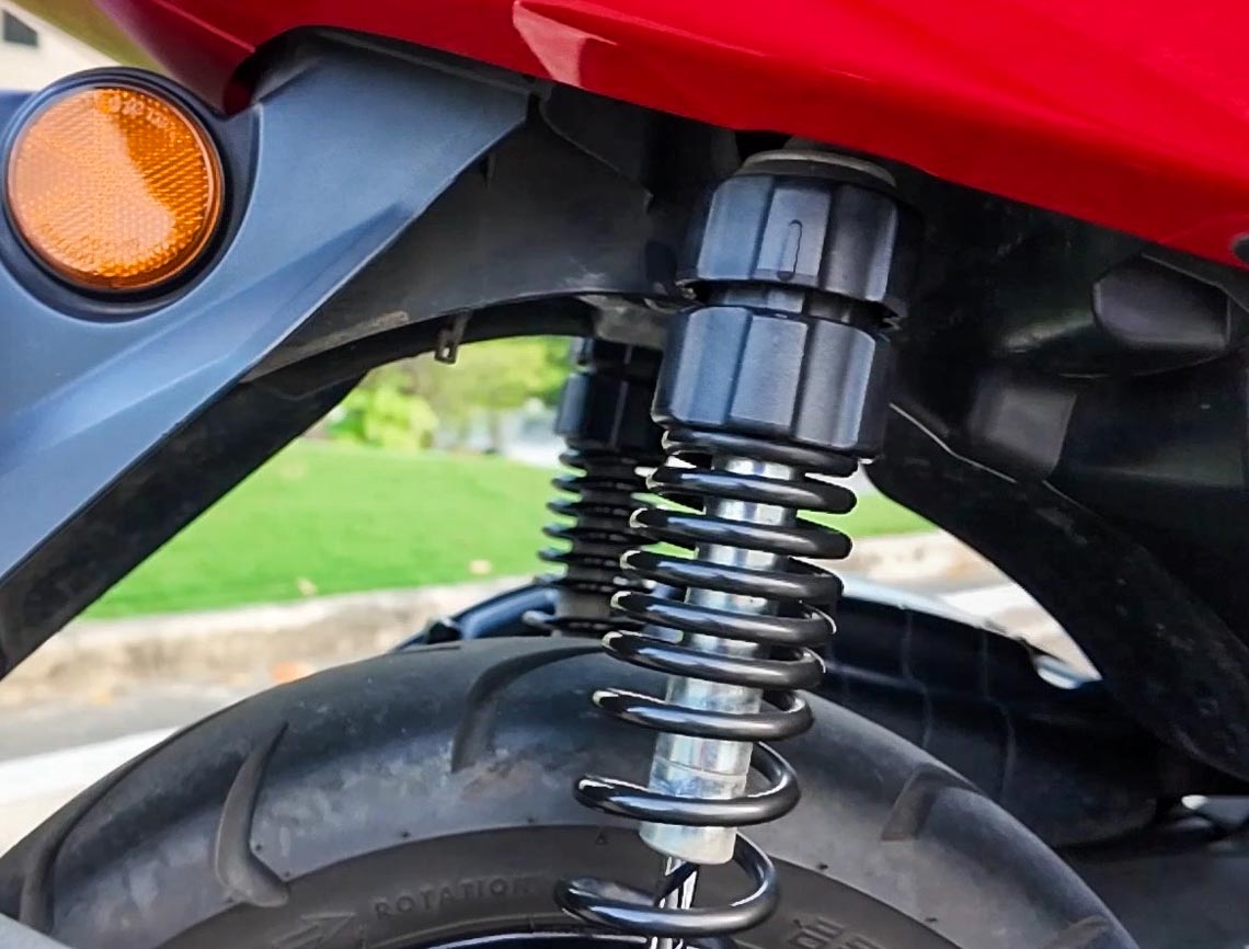 โดยโช้คอัพหน้าแบบเทเลสโคปิคที่มีได้รับการเซ็ทอัพใหม่พร้อมกับมีระยะยุบตัวถึง 86 มม. ส่งผลให้การซับแรงมีความนุ่มหนึบและกระชับมากขึ้น แต่ไฮไลท์สำคัญคือ “โช้คอัพหลัง” ซึ่ง XMAX Connected มาพร้อมกับโช้คอัพที่สามารถปรับ “Preload” ความแข็งของสปริงได้ ทำให้ผู้ขับขี่สามารถเลือกความแข็งอ่อนของโช้คอัพหลังได้ตามความต้องการ และสามารถปรับพรีโหลดได้ง่ายๆ ด้วยมือเปล่าเพียงบิดเกลียวที่อยู่ด้านบนของหัวโช้คอัพเท่านั้น