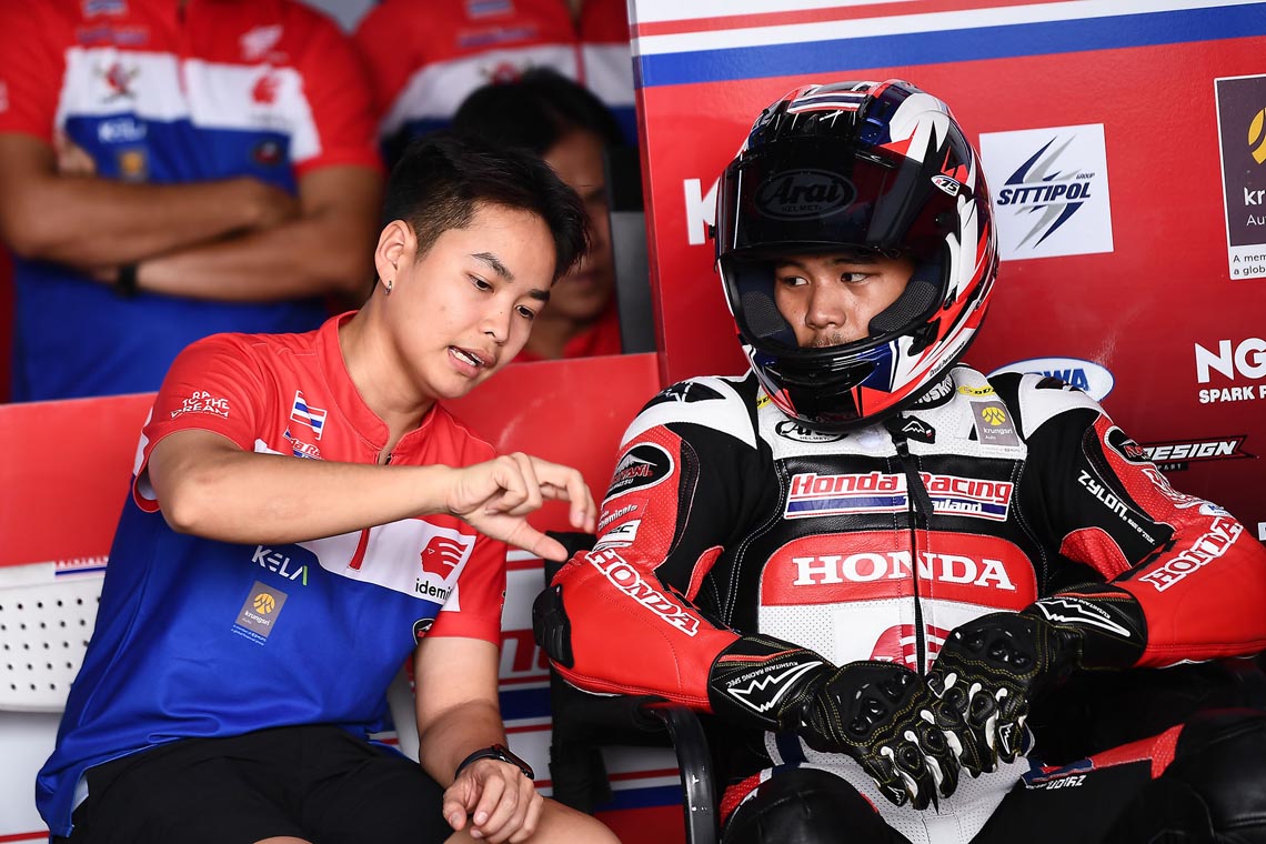 ขณะที่อันดับ 2 และ 3 เป็นของคู่หูชาวมาเลเซียจาก อิเดมิตสึ บุนซิว ฮอนด้า เรซซิ่ง อย่าง อัซรอย ฮาคีม อานัวร์ และ มูฮัมหมัด เฮลมี อัซมาน ตามหลัง คนละ 0.123 วินาที และ 0.676 วินาที ส่วนอันดับ 4 เป็นของ “มิกซ์” ธนัช ละอองปลิว นักบิดดาวรุ่งชาวไทยจาก ฮอนด้า เรซซิ่ง ไทยแลนด์ ด้วยเวลาต่อรอบ 1 นาที 39.971 วินาที ตามหลังจ่าฝูง 0.975 วินาที ด้านทีมเมทอย่าง “ไม้คิว”เกียรติศักดิ์ สิงหพงศ์ รั้งอันดับ 10 ตามหลัง 2.133 วินาที