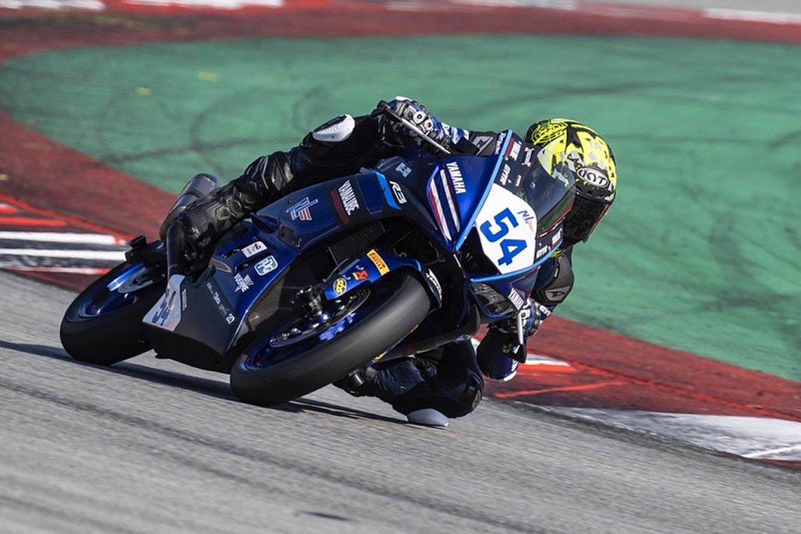 “เติ้ล” วรพรต ทองดอนเหมือน ยอดนักบิดดาวรุ่งชาวไทยจาก ยามาฮ่า ไทยแลนด์ เรซซิ่ง ฃทีม ประเดิมรั้งอันดับ 15 ในการซ้อมครั้งแรกของศึกดาวรุ่ง “เวิลด์ คัพ” รายการ FIM Yamaha R3 bLu cRU World Cup 2024 หลังลงสนามช่วงแรกเมื่อบ่ายที่ผ่านมา ที่ เซอร์กิต เด บาร์เซโลน่า-คาตาลุนญ่า