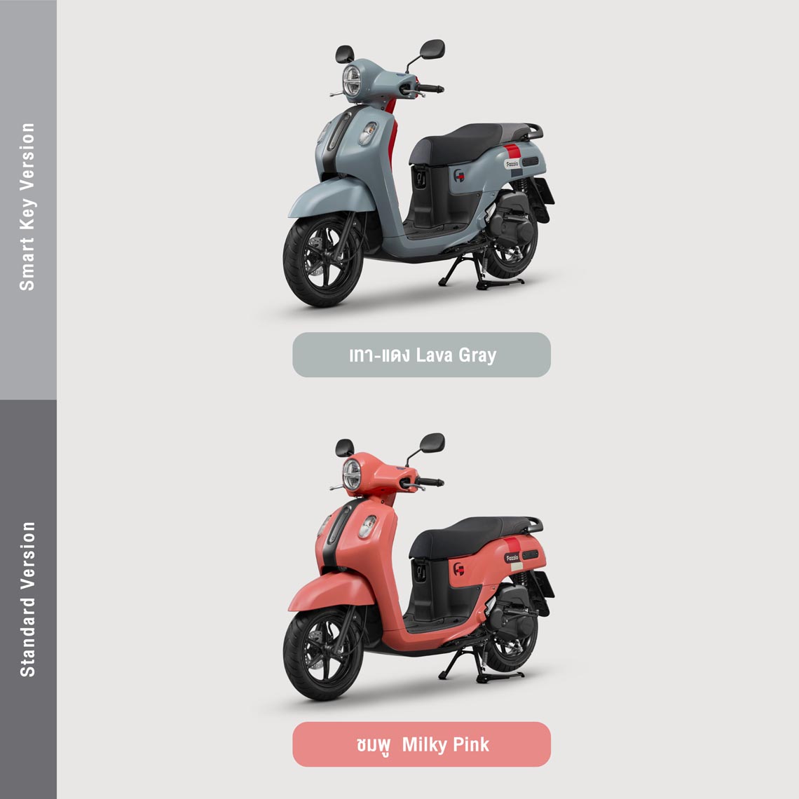 รุ่น Smart key Ver. ที่มาพร้อมกัน 3 สีสไตล์ทูโทน คือ เทา–แดง (Lava Gray), น้ำตาล–เหลือง (Sugar Brown) และ ดำ–ฟ้า ( Iced Black) โดยจำหน่ายในราคา 55,500 บาท และรุ่น STD Ver. มีให้เลือกใช้ 3 สี ได้แก่ สีฟ้า-Candy Blue, สีชมพู-Milky Pink และ สีเทา-Gummy Gray ในราคา 53,800 บาท และให้ความมั่นใจในการรับประกันมากกว่า ถึง 5 ปี หรือ 50,000 กิโลเมตร
