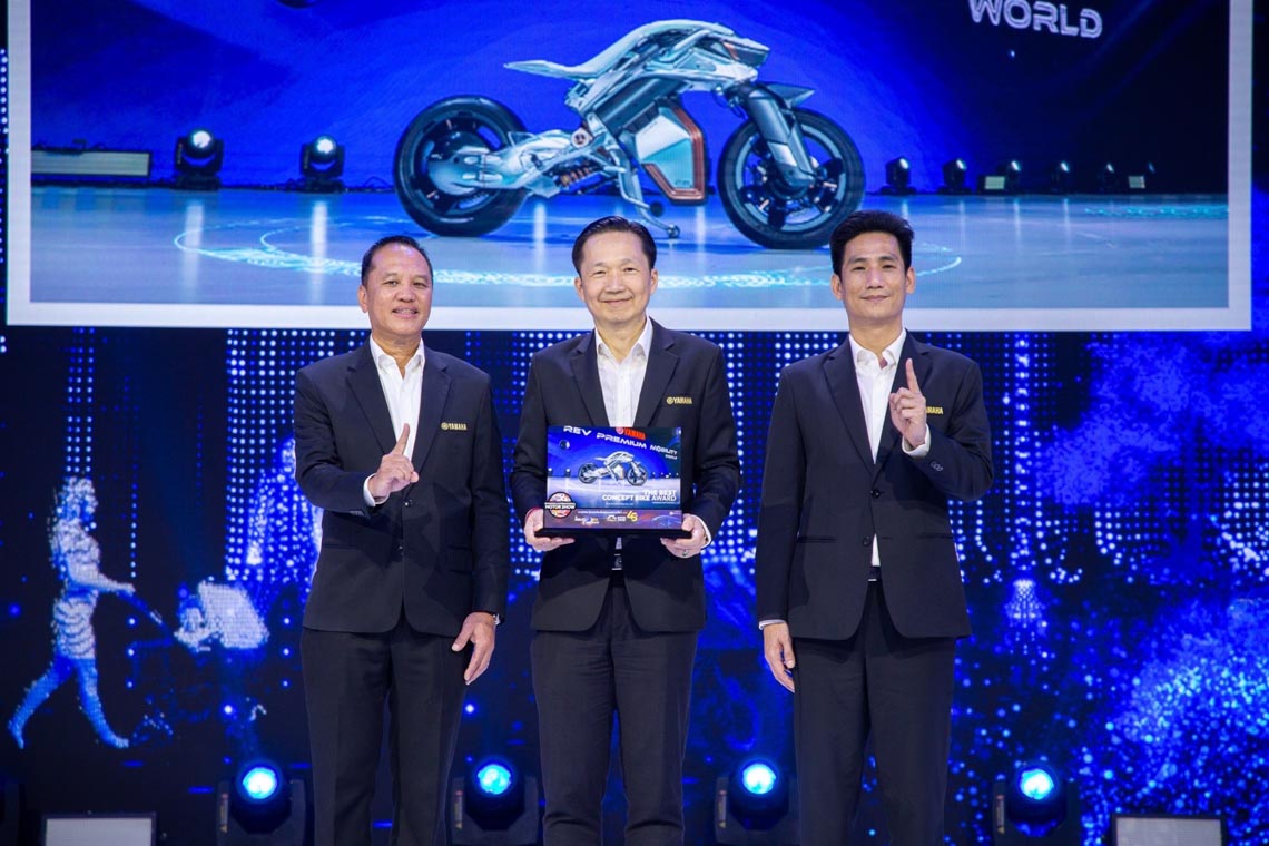 นายพงศธร เอื้อมงคลชัย ประธานกรรมการบริหาร นายภาณุพล กิตติคำรณ ผู้จัดการใหญ่ด้านการค้า และนายอุกฤษณ์ ภาควิวรรธ รองผู้จัดการใหญ่ ด้านวางแผนการค้า และการตลาด บริษัท ไทยยามาฮ่ามอเตอร์ จำกัด ถ่ายภาพร่วมกับ ดร.ปราจิน เอี่ยมลำเนา ประธานคณะผู้จัดงาน บางกอก อินเตอร์เนชั่นแนล มอเตอร์โชว์ ในการรับมอบ รางวัล Exhibit Design Award การออกแบบ และดีไซน์บูธยอดเยี่ยม 18 ปีติดต่อกัน ซึ่งแสดงความสวยงามของการออกแบบคอนเซ็ปต์บูธภายใต้แนวคิด YAMAHA REV MOBILITY WORLD โลกแห่งยนตรกรรมสุดพรีเมียม สู่อิสรภาพแห่งความเร้าใจในการเดินทางแบบไร้ขีดจำกัด สะท้อนความอิสระ ไม่หยุดนิ่ง ผสมผสานเทคโนโลยี และนำเสนอความคิดสร้างสรรค์ พร้อมอีก 2 รางวัลได้แก่ รางวัล The Best Concept Bike Award จากการนำเสนอรถจักรยานยนต์ต้นแบบอัจฉริยะ MOTOROiD2 และรางวัล The Best Presentation Award การนำเสนองานยอดเยี่ยม จากการนำเสนอรูปแบบการเปิดบูธที่ทันสมัย และได้รับความสนใจจากผู้เข้าร่วมงานเป็นจำนวนมาก