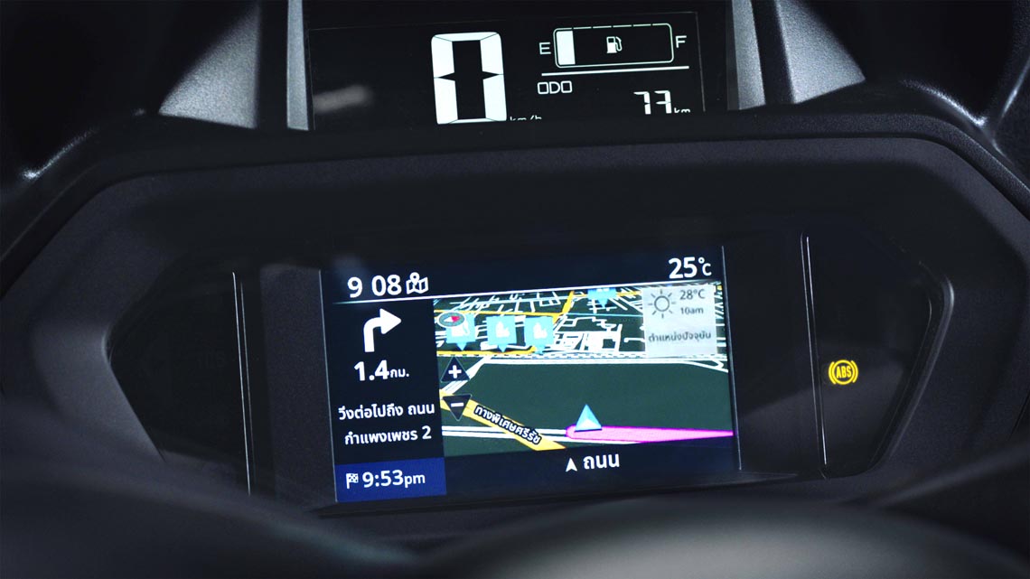 “NEW XMAX CONNECTED” ยังเหนือชั้นด้วย GARMIN NAVIGATION SYSTEM ระบบนำทางในการขับขี่ ฟังก์ชันสำหรับการเดินทางที่สะดวกสบาย เพียงเชื่อมต่อ Y-Connect แล้วใช้แอปพลิเคชัน Garmin Street Cross ค้นหาสถานที่ กำหนดปลายทาง และเลือกเส้นทางบนสมาร์ทโฟน ระบบนำทางจะแสดงบนหน้าจอแสดงผล TFT เพื่อรองรับการเดินทางของผู้ใช้โดยไม่มีค่าบริการ โดยสามารถซูมแผนที่เส้นทางเข้าออก หรือปรับเปลี่ยนมุมมองได้โดยใช้สวิตช์บนแฮนด์ด้านซ้ายในการควบคุม ซึ่งสามารถดูข้อมูลต่างๆ ได้ดังนี้...
