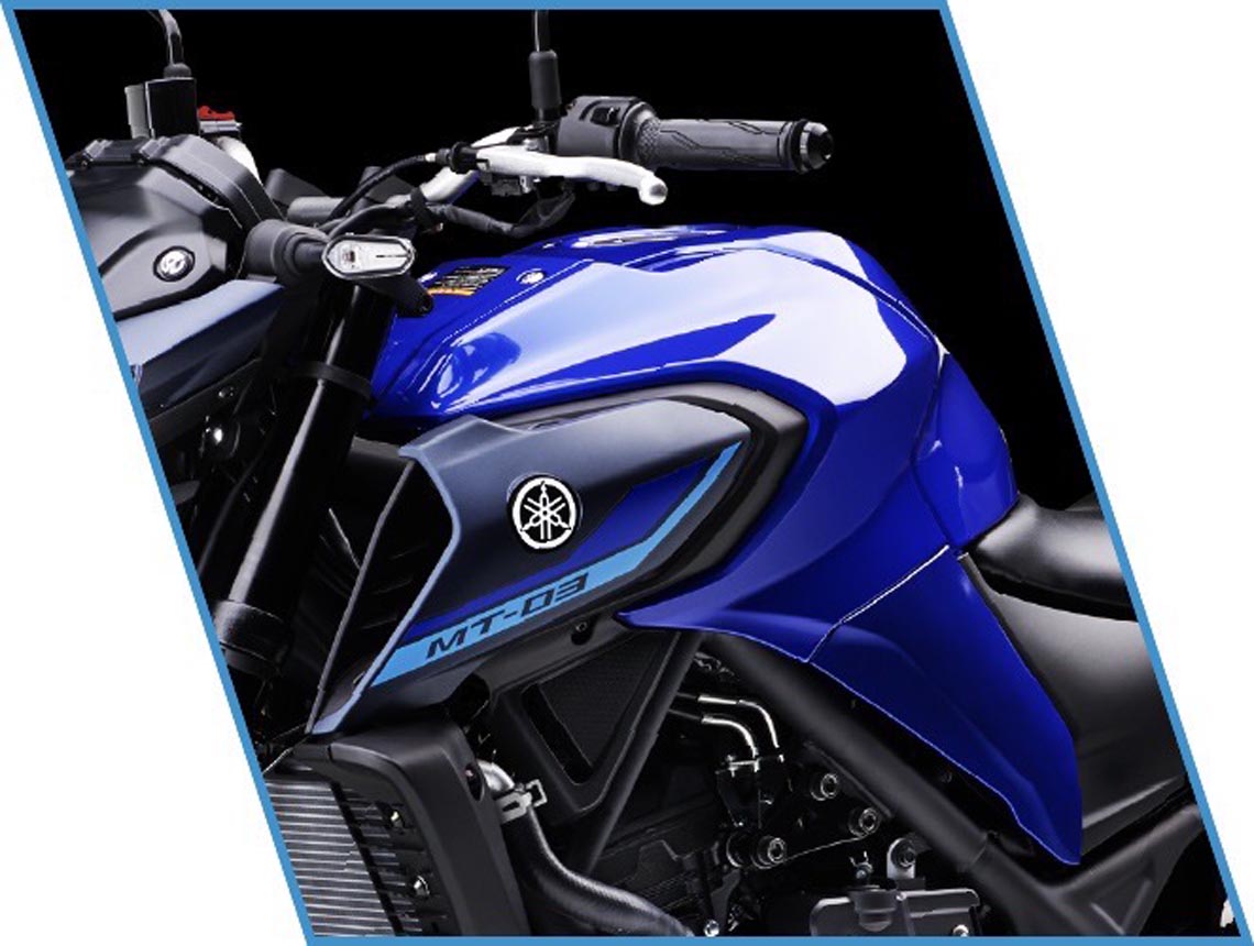 สำหรับ “NEW YAMAHA MT-03…DARK BLAST” สีใหม่! ยังคงเท่ สะดุดตา ดุดัน ตามสไตล์ MT-Series ด้วยชุดไฟหน้า FULL LED ดีไซน์แบบ TWIN-EYES และเทคโนโลยี MONO FOCUS LED ที่ใช้ในรถ Big Bike สว่างชัดทุกระยะการขับขี่, ไฟเลี้ยวแบบ LED ดีไซน์ใหม่! โฉบเฉี่ยว คมชัด, ถังน้ำมันรูปทรงใหม่ เท่ ดุดัน สไตล์ Big Bike สะท้อนเอกลักษณ์ MT-Series ให้ความกระชับในการขับขี่ยิ่งขึ้น, โช้คหน้า TELESCOPIC แบบ UPSIDE DOWN เพิ่มสมรรถนะการทรงตัว ซับแรงสั่นสะเทือนที่ดีขึ้นทั้งในช่วงทางตรงและทางโค้ง พร้อมหยุดรถได้อย่างมั่นใจในทุกสถานการณ์ด้วยระบบเบรก ABS ช่วยลดการลื่นไถลในสถานการณ์คับขัน