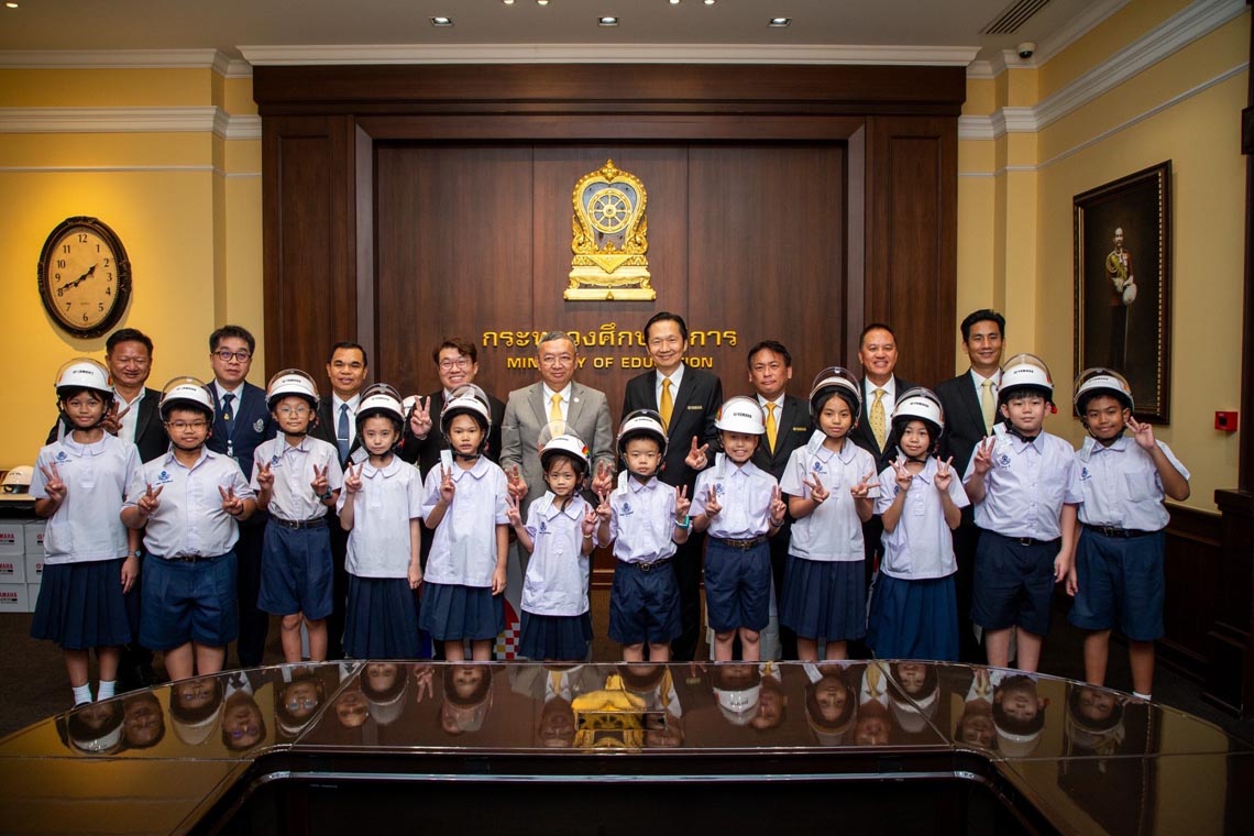 โดยการมอบหมวกนิรภัยขนาดเล็กที่ได้รับมาตรฐานอุตสาหกรรม ในครั้งนี้ มีขึ้น ณ ห้องราชวัลลภ กระทรวงศึกษาธิการ เมื่อเร็วๆ นี้