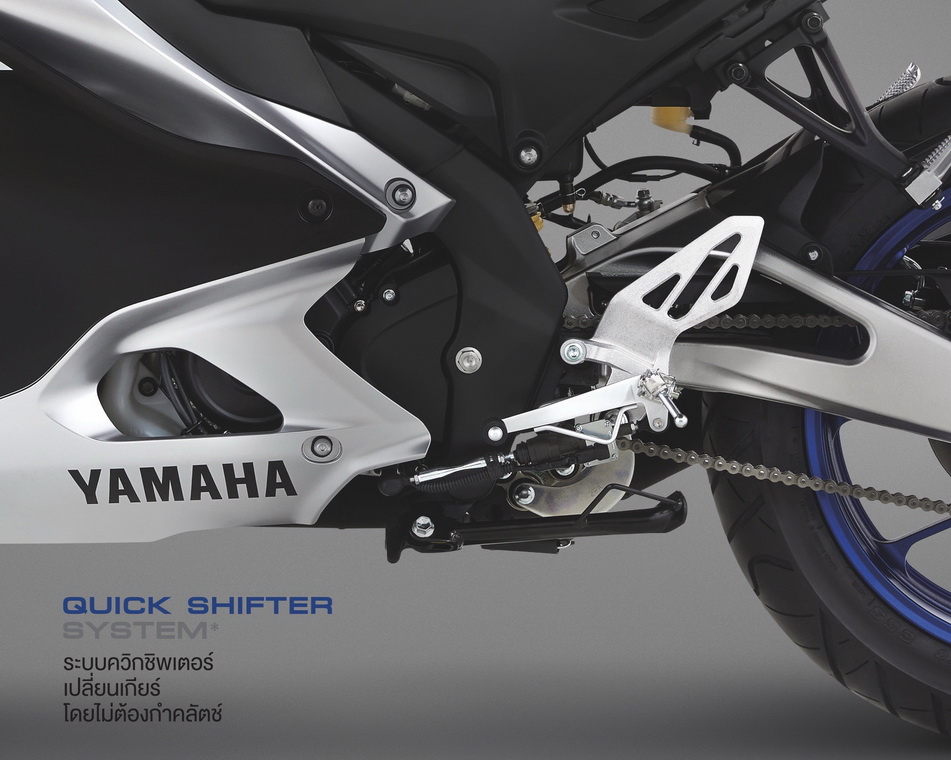เพิ่มความเร้าใจยิ่งขึ้นเฉพาะรุ่น New R15M Connected-ABS กับระบบ Quick Shifter เปลี่ยนเกียร์โดยไม่ต้องกำคลัตช์, ระบบ Traction Control ช่วยลดการลื่นไถลของล้อหลัง และระบบเบรก ABS พร้อมให้คุณพุ่งทะยานไปสู่ความเป็นหนึ่ง