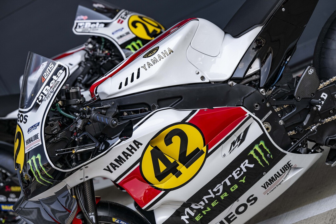 ลายพิเศษนี้ได้รับแรงบันดาลใจจากนักบิดระดับตำนานของ ยามาฮ่า อย่าง ยาร์โน ซาริเนน และ จิอาโคโม อกอสตินี ที่ลงบิดด้วยรถแข่ง YZR500 ในขณะนั้น ซึ่งถูกใช้เป็นลายสำหรับ 3 นักบิดของทีมอย่าง ฟาบิโอ กวาร์ตาราโร, อเล็กซ์ รินส์ และ เรมี การ์ดเนอร์ ที่จะใช้ลงแข่งขันใน ซิลเวอร์สโตน สุดสัปดาห์นี้