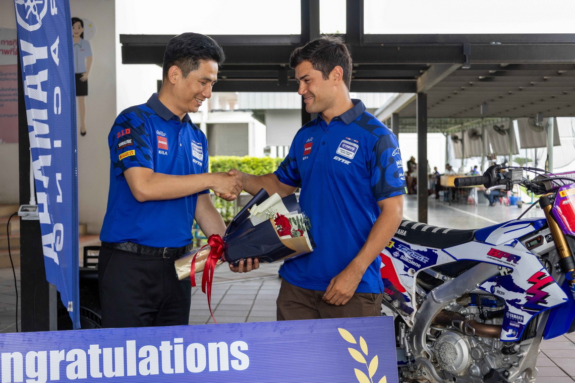 นายอุกฤษณ์ ภาควิวรรธ รองผู้จัดการใหญ่ด้านวางแผนการค้า และการตลาด นายวีรพงษ์ ธนากิจจานนท์ ผู้จัดการทั่วไปฝ่ายกีฬายานยนต์ พร้อมคณะผู้บริหาร YAMAHA THAILAND RACING TEAM บริษัท ไทยยามาฮ่ามอเตอร์ จำกัด ร่วมกันมอบช่อดอกไม้ และแสดงความยินดีกับ เบน ประสิทธิ์ ฮัลเกรน นักแข่งในสังกัด YAMAHA Ben Prasit Racing ที่ควบ YAMAHA YZ250F หมายเลข 31 ลงทำการแข่งขันในรายการ FMSCT Thailand Supercross 2024 และสามารถคว้าแชมป์ประเทศไทยได้อีกครั้ง โดยนับเป็นการคว้าแชมป์ประเทศไทยได้เป็นสมัยที่ 3 ให้กับตัวเองได้อย่างยิ่งใหญ่ ทั้งนี้ เบน ประสิทธิ์ ฮัลเกรน ได้ร่วมงานกับยามาฮ่ามาอย่างยาวนาน และเป็นนักแข่งที่สร้างชื่อเสียงให้กับประเทศไทยได้อย่างต่อเนื่องจากการควบ YAMAHA YZ250F ลงทำการแข่งขันในรายการต่างๆ ในระดับประเทศ และนานาชาติ