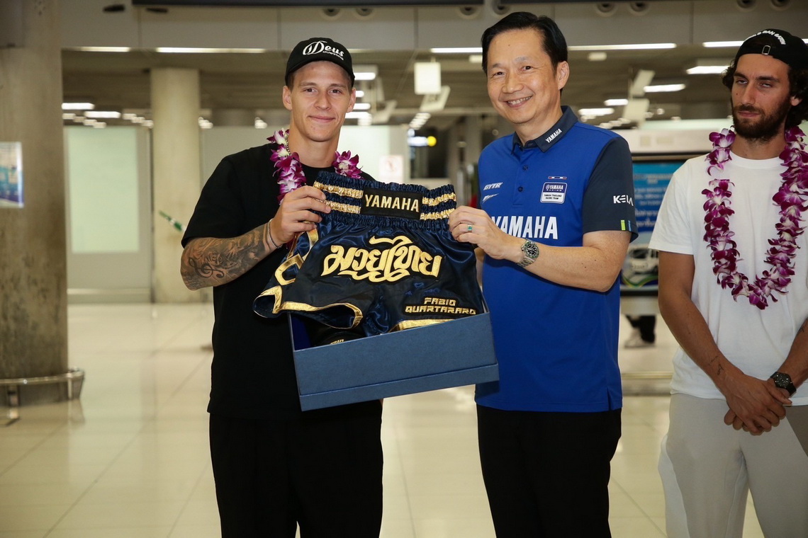 นายพงศธร เอื้อมงคลชัย ประธานกรรมการบริหาร นายภาณุพล กิตติคำรณ ผู้จัดการใหญ่ด้านการค้า นายอุกฤษณ์ ภาควิวรรธ รองผู้จัดการใหญ่ด้านวางแผนการค้า และการตลาด บริษัท ไทยยามาฮ่ามอเตอร์ จำกัด ถ่ายภาพร่วมกับ 2 คู่หูนักแข่งยามาฮ่า นำโดยแชมป์โลก 1 สมัย ฟาบิโอ กวาร์ตาราโร #20 ดาวบิดสัญชาติฝรั่งเศส พร้อมด้วยอเล็กซ์ รินส์ #42 ดาวบิดชาวสเปน หลังมอบชุด BOX SET มวยไทย ประกอบด้วยเสื้อคลุม นวม และกางเกง พร้อมโลโก และชื่อ 2 นักแข่งเป็นที่ระลึกในการต้อนรับการเดินทางมาร่วมการแข่งขัน พีที กรังด์ปรีซ์ ออฟ ไทยแลนด์ โดยนักแข่งทั้ง 2 รู้สึกปลืัมใจกับการต้อนรับของไทยยามาฮ่า และบรรดาแฟนคลับชาวไทยเป็นอย่างมาก รวมถึงรู้สึกประทับใจในของที่ระลึกที่เป็นมวยไทยที่ชื่นชอบอีกด้วย