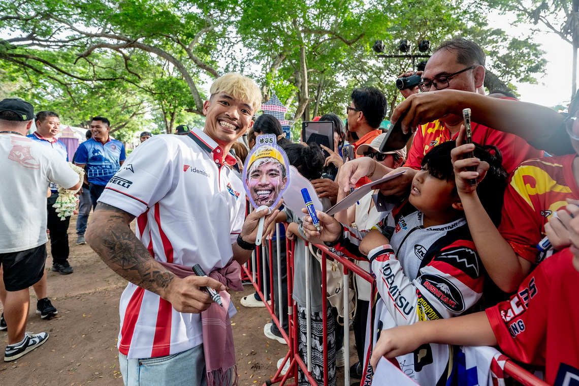 กิจกรรมเริ่มจากคณะนางรำ ต้อนรับด้วยดนตรีพื้นบ้าน “กันตรึมประยุกต์” ที่มีท่วงทำนองสนุกสนาน โดยมีคณะผู้บริหารร่วมให้การต้อนรับและมอบพวงมาลัยคล้องมือ ได้แก่ นายปรีชา ลาลุน รองผู้ว่าการการกีฬาแห่งประเทศไทย ฝ่ายกีฬาอาชีพและกีฬามวย, มงคล วัตตะโร ผู้อำนวยการกองเผยแพร่โฆษณาต่างประเทศ การท่องเที่ยวแห่งประเทศไทย, นายฉลอง ติรไตรภูษิต ผู้อำนวยการฝ่ายสื่อสารองค์กร บริษัท พีทีจี เอ็นเนอยี จำกัด (มหาชน), ว่าที่ร้อยตรีณรงค์เดช แจ้งดี ผู้จัดการขาย-ออนเทรด ศูนย์บุรีรัมย์ ตัวแทนน้ำแร่ธรรมชาติตราช้าง, ดร.อารักษ์ พรประภา ประธาน บริษัท ไทยฮอนด้า จำกัด, นายอุกฤษณ์ ภาควิวรรธ รองผู้จัดการใหญ่ด้านวางแผนการตลาด บริษัท ไทยยามาฮ่ามอเตอร์ จำกัด, พล.ต.ต.รุทธพล เนาวรัตน์ ผู้บังคับการตำรวจภูธรจังหวัดบุรีรัมย์ และนายโชติชนก ชิดชอบ ผู้อำนวยการฝ่ายกิจกรรมต่างประเทศ สนามช้าง อินเตอร์เนชั่นแนล เซอร์กิต