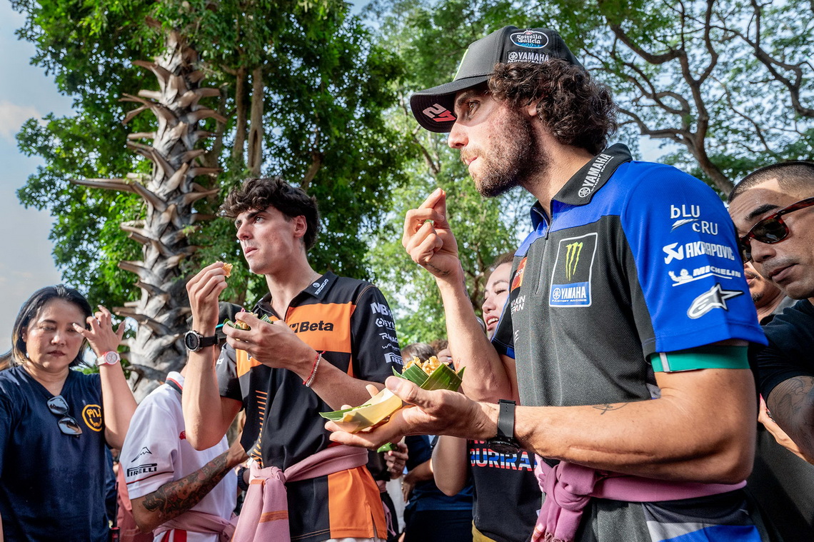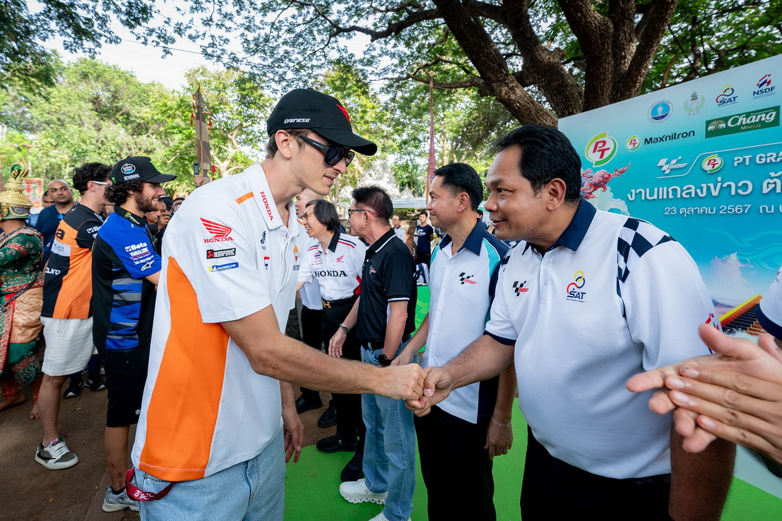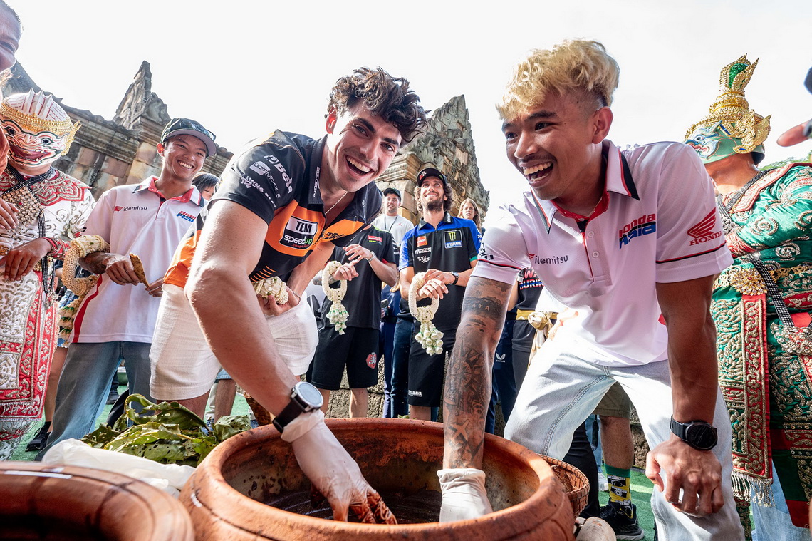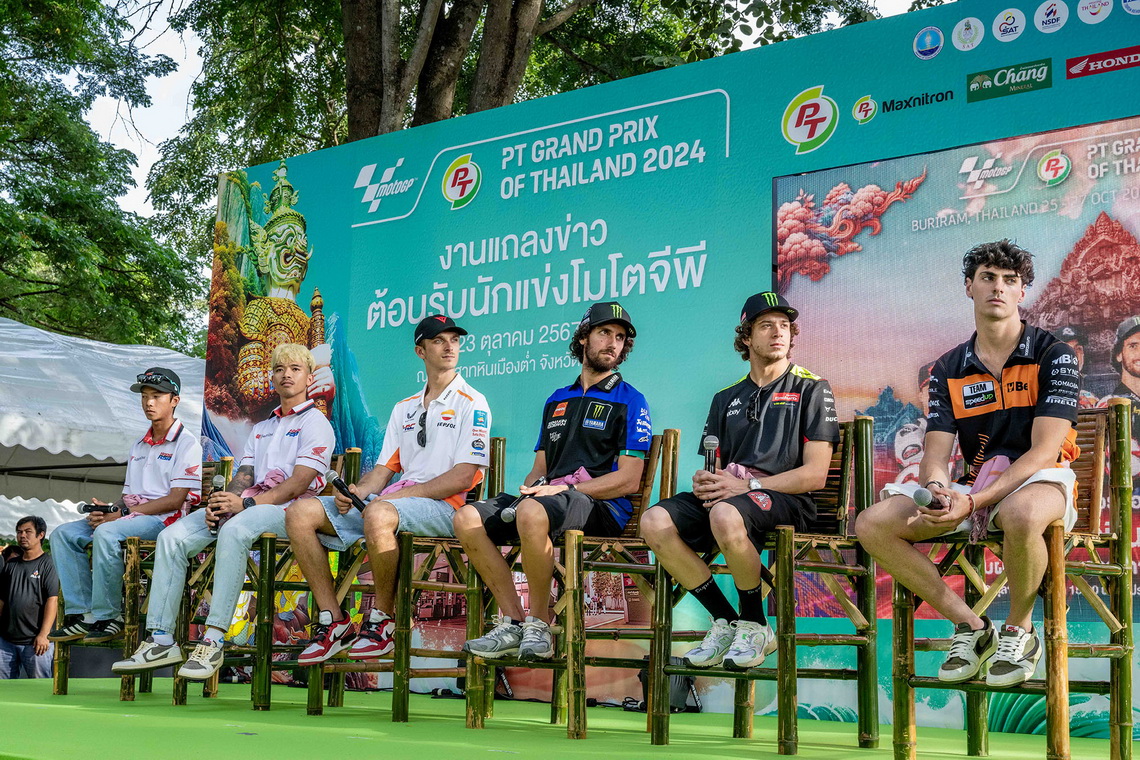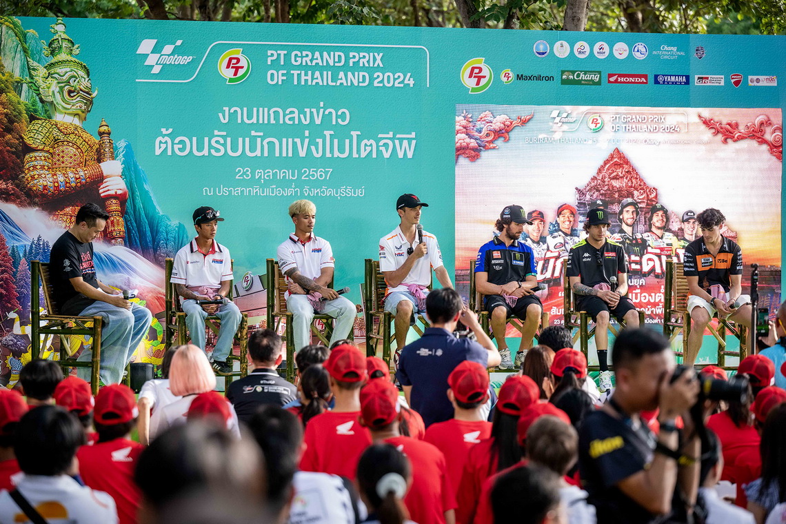 ประเทศไทยจัดกิจกรรม Pre Event ต้อนรับนักแข่ง โมโตจีพี สนามประเทศไทย รายการ “PT Grand Prix of Thailand 2024” อย่างยิ่งใหญ่ เมื่อวันพุธที่ 23 ตุลาคม 2567 โดยนักบิดชื่อดัง ได้แก่ อเล็กซ์ รินส์, ลูก้า มารินี่, มาร์โก้ เบซเซคกี้, เฟอร์มิน อัลเดอร์แกร์ รวมทั้ง 2 นักบิดไทยที่ลงทำการแข่งขัน “ก้อง” สมเกียรติ จันทรา และธัชกร บัวศรี ในธีมเสน่ห์อีสาน พาท่องเที่ยวย้อนยุค ชมปราสาทหินเมืองต่ำ อ.ประโคนชัย จ.บุรีรัมย์ พร้อมด้วยเหล่าคณะผู้บริหารฝ่ายจัดการแข่งขัน แฟนคลับและกองทัพสื่อมวลชนร่วมงานมากมาย
