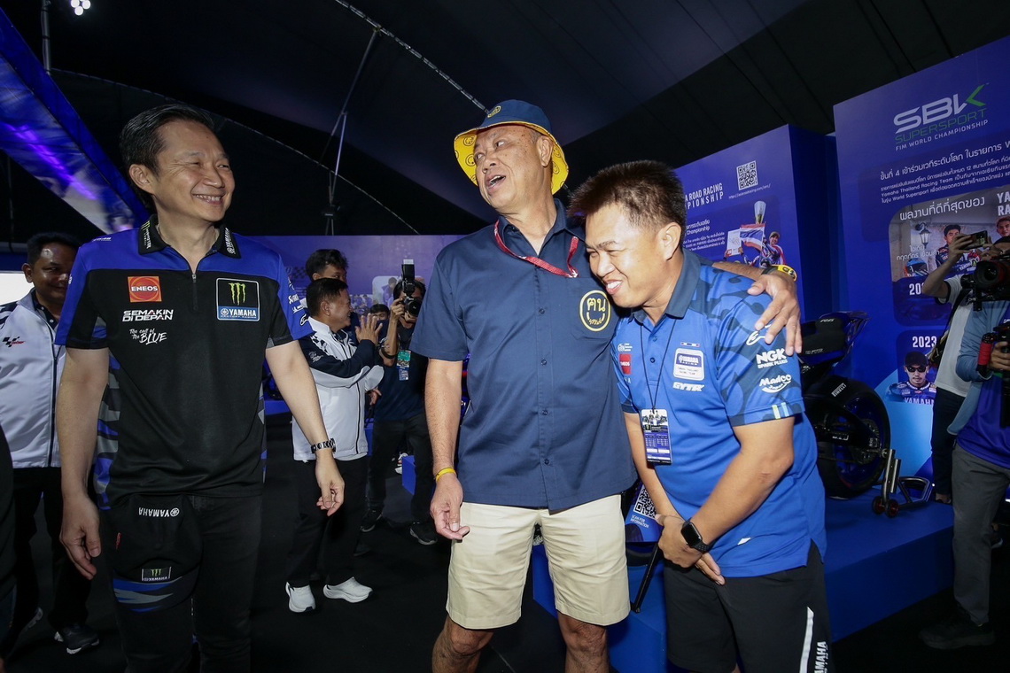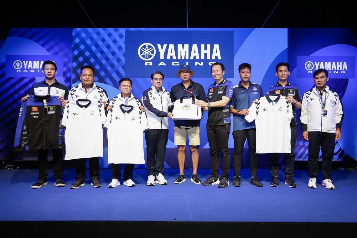 นายพงธร เอื้อมงคลชัย ประธานกรรมการบริหาร พร้อมคณะผู้บริหารระดับสูง บริษัท ไทยยามาฮ่ามอเตอร์ จำกัด ให้การต้อนรับ และถ่ายภาพร่วมกับ นายเนวิน ชิดชอบ ประธาน บริษัท บุรีรัมย์ยูไนเต็ด อินเตอร์เนชั่นแนลเซอร์กิต จำกัด ดร.ก้องศักด ยอดมณี ผู้ว่าการการกีฬาแห่งประเทศไทย พร้อมด้วย 4 นักแข่งยามาฮ่า ไทยแลนด์ เรซซิ่งทีม