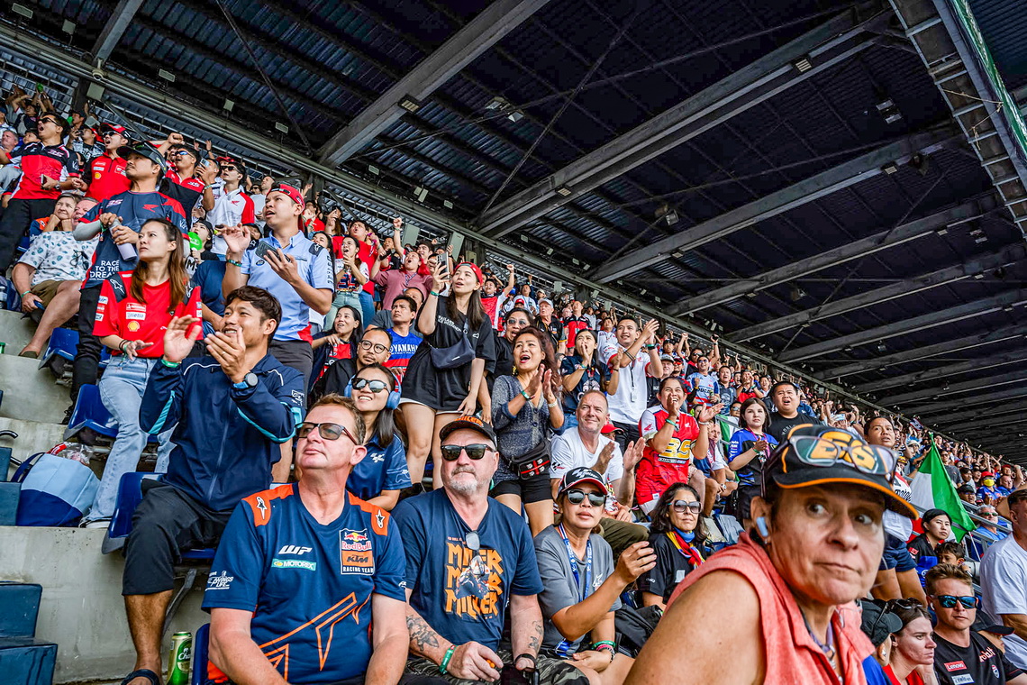 สำหรับเกม ThaiGP 2024 ประเดิมความันส์กันที่รอบ “สปรินต์” ในวันเสาร์ที่ 26 ตุลาคม 2567 ท่ามกลางการติดตามของแฟนความเร็วทั่วโลกผ่านการถ่ายทอดสดกว่า 220 ประเทศ ขณะเดียวกันก็มีแฟนมอเตอร์สปอร์ตทั้งชาวไทยและต่างชาติ เข้ามาชมเกือบเต็มความจุของทุกสแตนด์ บรรยากาศสุดคึกคัก สร้างความประทับใจให้กับนักแข่ง ทีมแข่ง สื่อมวลชวนระดับโลก และ ดอร์น่า สปอร์ต เจ้าของลิขสิทธิ์อย่างมาก