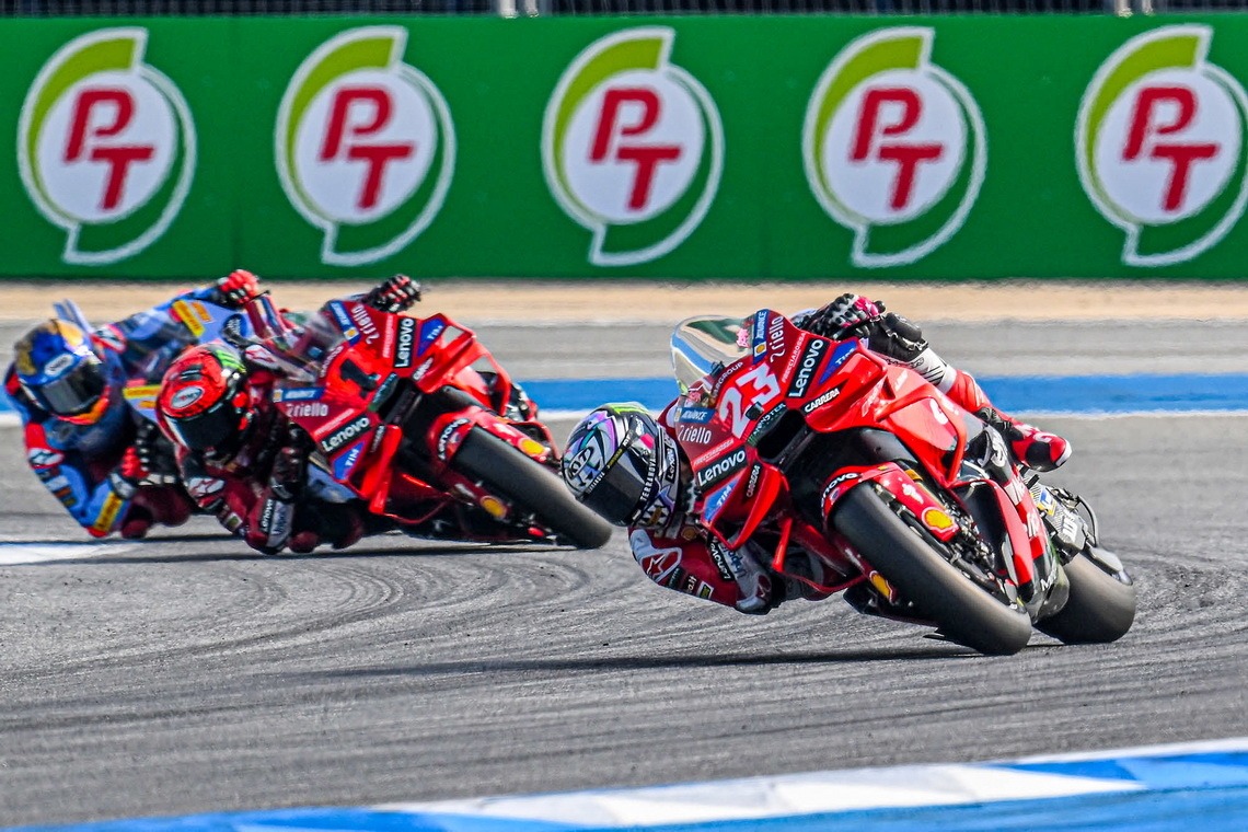 สุดยอดมอเตอร์สปอร์ตสองล้อ!!! การแข่งขันจักรยานยนต์ทางเรียบชิงแชมป์โลก โมโตจีพี 2024 สนาม 18 รายการ PT Grand Prix of Thailand 2024 ที่จัดขึ้นระหว่างวันที่ 25-27 ตุลาคม 2567 เปิดเกมดวลเดือดกระตุ้นอะดรินาลีนแฟนความเร็วแบบสุดมันส์ ทั้ง “สปรินต์เรซ” และ “เมนเรซ” โดยคู่หูจาก ดูคาติ เลอโนโว ทีม ผลัดกันคว้าชัยอันดับ 1 ไปครองได้สำเร็จ ส่วน “ฮอร์เก มาร์ติน” ยังคงเป็นผู้นำคะแนนสะสมก่อนไปลุ้นแชมป์โลกต่อกับ 2 สนามสุดท้าย!!!