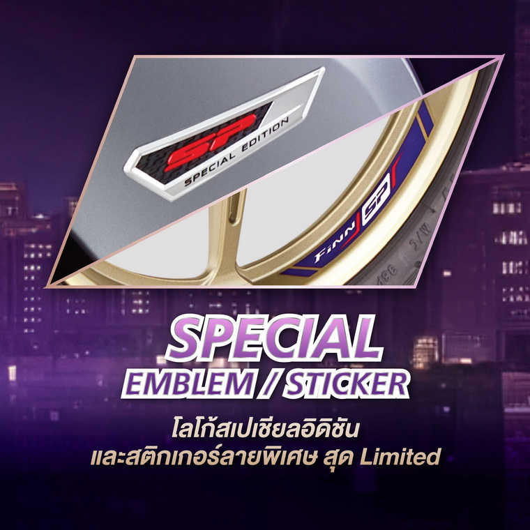 สำหรับ NEW YAMAHA FINN SPECIAL EDITION มาพร้อมกับสีสันใหม่โดดเด่น สปอร์ตพรีเมียม พร้อมโลโก้ Special Edition บนตัวรถที่ออกแบบมาเฉพาะรุ่น และสติกเกอร์ลายพิเศษบนล้อแม็กหน้า - หลัง สุด LIMITED เพิ่มสไตล์การขับขี่ให้โดดเด่นอย่างลงตัว