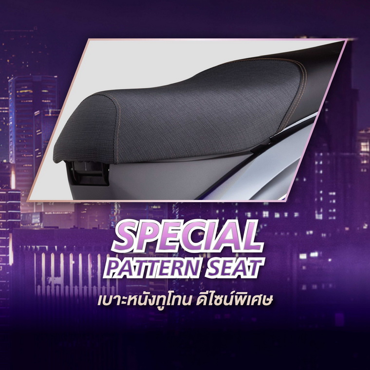 NEW YAMAHA FINN SPECIAL EDITION ยังเพิ่มความพรีเมียมด้วย SPECIAL SEAT PATTERN เบาะหนังทูโทนดีไซน์พิเศษ ให้ความรู้สึกหรูหราพรีเมียม และแตกต่างอย่างลงตัว