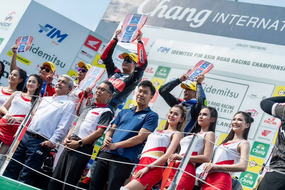 ด้านการลุ้นแชมป์ในรุ่นเล็กอย่าง เอเชีย โปรดักชั่น 250 ซีซี ยังต้องมาตัดสินที่ประเทศไทยเช่นกัน โดย “เฮอร์จุน แอทน่า เฟอร์ดาอุส” ดาวรุ่งชาวอินโดนีเซียจาก แอสตร้า ฮอนด้า เรซซิ่ง ทีม รั้งจ่าฝูงเหนือทีมเมทอย่าง “มูฮัมหมัด เคียนดร้า รามาดิป้า” 10 คะแนน ส่วนอันดับ 3 ได้แก่ “มูฮัมหมัด แฟโรซี” จาก ยามาฮ่า เรซซิ่ง อินโดนีเซีย ตามหลัง 12 คะแนน ขณะที่นักบิดไทยอย่าง “วริทธ์ ทองนพคุณ” และ “ปิยวัฒน์ ประทุมยศ” จาก อีสต์ เอ็นเจที เรซซิ่ง ทีม รั้งอันดับ 8 และ 9 มีคนละ 64 คะแนน และ 43 คะแนนตามลำดับ