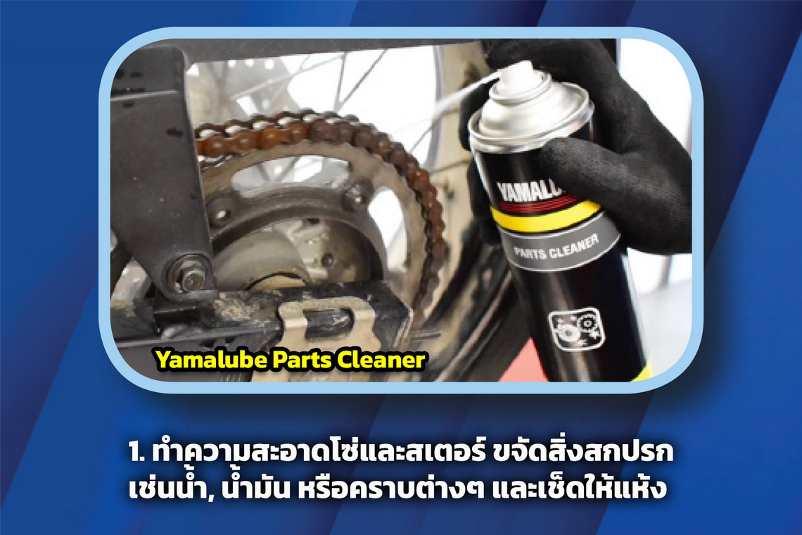 1. ทำความสะอาดโซ่และสเตอร์ ขจัดสิ่งสกปรกเช่นน้ำ, น้ำมัน หรือคราบต่างๆ และเช็ดให้แห้ง