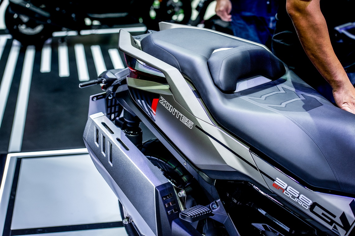 ZONTES 368G มาพร้อมเครื่องยนต์แบบสูบเดียว 368 ซีซี ระบายร้อนด้วยน้ำ หัวฉีด EFI ลูกสูบฟอร์จ เสื้อสูบอลูมิเนียม ให้ขุมกำลังสูงสุด 38 ม้า โช้คอัพหน้าแบบ Up Side Down ที่สามารถปรับ Compression-Rebound โช้คอัพหลังแบบโช้คคู่ พร้อมซับแท้งค์และสามารถปรับ Preload โดยจับคู่กับล้อหน้าขนาด 17" กับยาง ไซส์ 110/70 -17 ส่วนล้อหลัง 14" ยางไซส์ 150/70 – 14 ระบบเบรกแบบดิสก์เบรกหน้าพร้อมปั้มเรเดียล 4 สูบ และดิสก์เบรกหลังแบบ 2 สูบ โดยมาพร้อมระบบเบรก ABS แบบ Dual Channel และระบบ Traction Control ที่สามารถปิดการทำงานทั้ง Traction และ ABS หลัง พร้อมโหมดการขับขี่ 2โหมดคือ ECO และ Sport