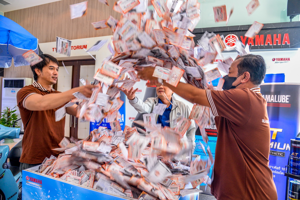 นายกัมพล พรสูงส่ง รองผู้จัดการใหญ่ด้านการขาย บริการ และอะไหล่ บริษัท ไทยยามาฮ่ามอเตอร์ จำกัด ให้เกียรติเป็นประธานในพิธี พร้อมด้วยทีมผู้บริหารฝ่ายอะไหล่ ร่วมจับรางวัลผู้โชคดีจากแคมเปญ “อะไหล่แท้ แจกจริง ปีที่ 12” ครั้งที่ 4 ซึ่งเป็นแคมเปญที่ยามาฮ่าจัดขึ้นเพื่อมอบโชคให้กับร้านซ่อมรถจักรยานยนต์อิสระที่ได้ซื้อสินค้ายามาฮ่า อะไหล่แท้ หรือ วายเท็ค, น้ำมันเครื่องยามาลู้ป, อุปกรณ์ตกแต่ง และเสื้อผ้าเครื่องแต่งกาย ให้ได้ลุ้นรางวัลรถจักรยานยนต์ยามาฮ่ารุ่น FINN ล้อซี่ลวด/สตาร์ทมือ (2022), สร้อยคอทองคำหนัก 2 สลึง, แจ็คเก็ตมีฮูด R-Series, หมวกกันน็อคเต็มใบปิดคาง, บัตรเติมน้ำมันคาลเท็กช์ สตาร์แคช โดยของรางวัลตลอดทั้งแคมเปญในครั้งนี้มีจำนวน 684 รางวัล รวมเป็นมูลค่ากว่า 1.8 ล้านบาท