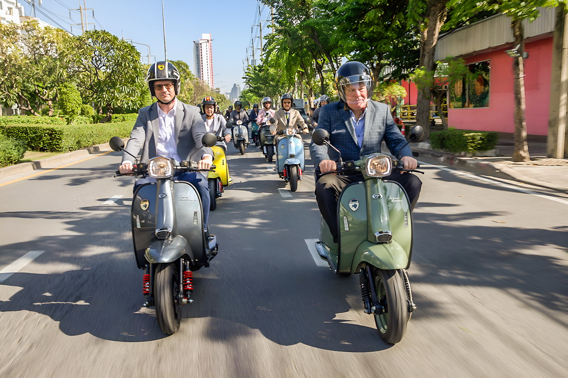 นายแฟรงก์ แซนเดอร์สัน ผู้ร่วมก่อตั้งสโกมาดิ เสริมว่า “สโกมาดิ ถือกำเนิดจากความหลงใหลในรูปลักษณ์ที่อยู่เหนือกาลเวลาของรถสกู๊ตเตอร์แบบดั้งเดิม ผสานกับความรู้ด้านวิศวกรรมรถจักรยานยนต์ ที่สั่งสมจากการเป็นเจ้าของสำนักแต่งรถสกู๊ตเตอร์ และประสบการณ์การทำงานกว่า 60 ปี แรงบันดาลใจนี้นำมาสู่การสร้างสรรค์รถสกู๊ตเตอร์สโกมาดิคันแรกในปี 2548 ณ ประเทศอังกฤษ ตลอดระยะเวลาเกือบ 20 ปี เรามีการพัฒนารถรุ่นใหม่อย่างต่อเนื่อง โดยยังคงยึดมั่นในดีเอ็นเอ “บริทิช โมเดิร์น คลาสสิก" อย่างเข้มข้น สะท้อนในการออกแบบทั้งโครงรถ ตัวถังเหล็ก เส้นสายโค้งมน เบาะหนังเย็บอย่างปราณีต ไปจนถึงไฟ LED ทรงกลม ที่รักษาเอกลักษณ์เฉพาะตัวครบถ้วน ผสานนวัตกรรมทันสมัย เช่น ระบบเบรค หน้าจอดิจิทัล และสมรรถนะเหนือระดับ เพื่อครองใจนักขับขี่ผู้มีใจรักความคลาสสิกในทุกยุคสมัย”