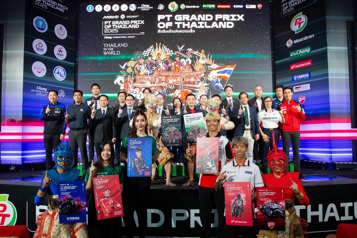 นายพงศธร เอื้อมงคลชัย ประธานกรรมการบริหาร นายภาณุพล กิตติคำรณ ผู้จัดการใหญ่ด้านการค้า นายอุกฤษณ์ ภาควิวรรธ รองผู้จัดการใหญ่ด้านวางแผนการค้า และการตลาด บริษัท ไทยยามาฮ่ามอเตอร์ จำกัด ถ่ายภาพร่วมกับ นายกฤษฎา ตันเทอดทิตย์ เลขานุการรัฐมนตรีว่าการกระทรวงการท่องเที่ยวและกีฬา ดร.ก้องศักด ยอดมณี ผู้ว่าการการกีฬาแห่งประเทศไทย นายโชติชนก ชิดชอบ ผู้อำนวยการฝ่ายกิจกรรมต่างประเทศ สนามช้าง อินเตอร์เนชั่นแนลเซอร์กิต นายพิทักษ์ รัชกิจประการ ประธานเจ้าหน้าที่บริหาร และกรรมการผู้จัดการใหญ่ บริษัท พีทีจี เอ็นเนอยี จำกัด (มหาชน) และมร.มาร์กอส ตอร์โรบา ผู้จัดการด้านการจัดการแข่งขัน ดอร์น่า สปอร์ต เจ้าของลิขสิทธิ์การแข่งขัน ในงานแถลงข่าวการจำหน่ายบัตรชมการแข่งขัน MotoGP สนามประเทศไทย ซึ่งในปีนี้ประเทศไทยได้รับเกียรติในการจัดการแข่งขันเป็นสนามแรกของฤดูกาล 2025 ณ สนามช้าง อินเตอร์เนชั่นแนล เซอร์กิต จ.บุรีรัมย์ ในวันที่ 28 กุมภาพันธ์ ถึง 2 มีนาคม 2568 นี้