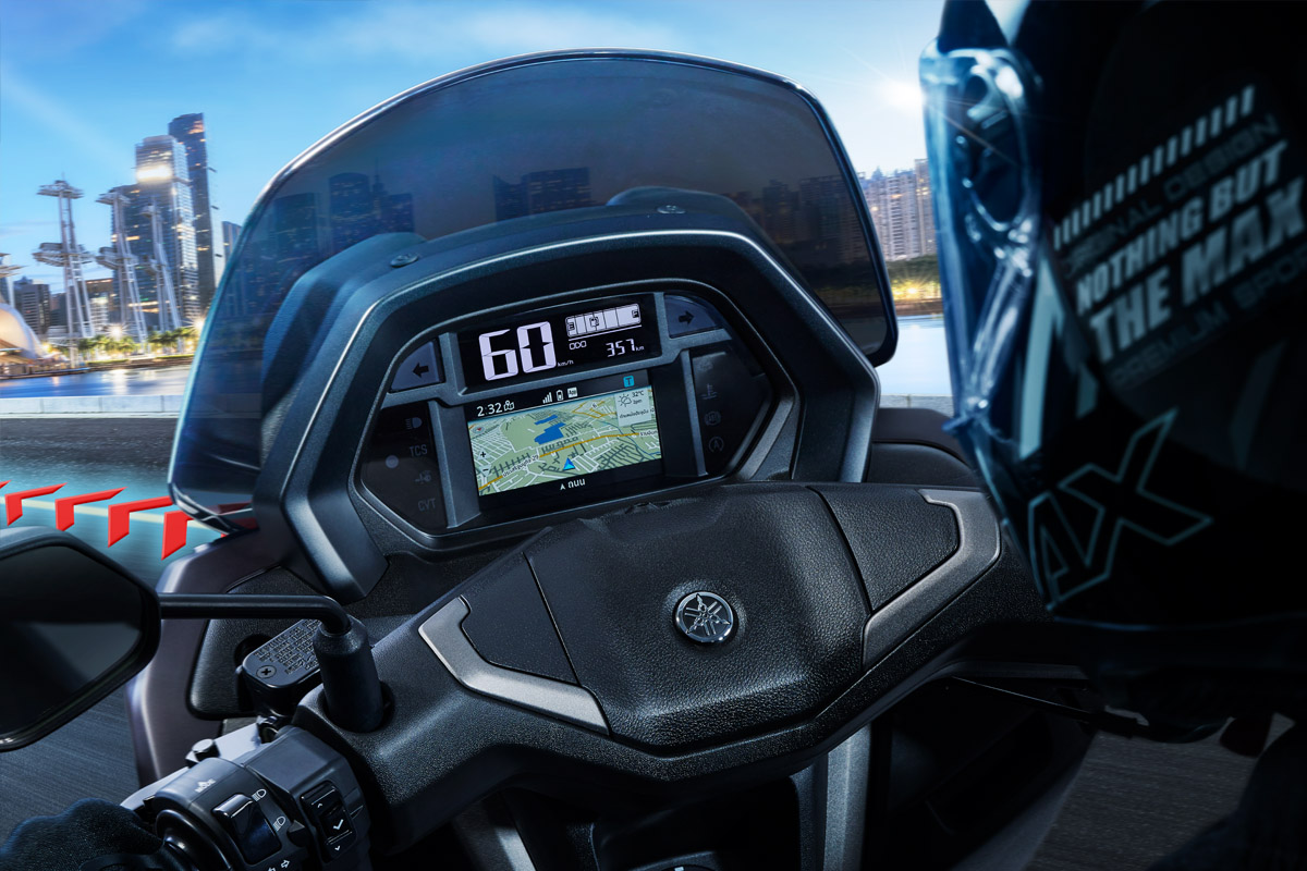 หน้าจอเรือนไมล์ดิจิทัลแบบใหม่ 2 หน้าจอ ซึ่งสามารถควบคุมการใช้งาน ได้อย่างง่ายดายด้วยสวิตช์บนแฮนด์ด้านซ้าย *เฉพาะรุ่น TECH MAX โดยหน้าจอสี TFT 4.2 นิ้ว ฟังก์ชันสุดล้าแบบ INFOTAINMENT แสดงผลข้อมูลมากมาย เพิ่มความสะดวกสบายขณะขับขี่ ไม่ว่าจะเป็น แสดงผลและแจ้งเตือนการทางานของรถ โหมดการขับขี่ รอบเครื่องยนต์ และสถานะการทางานของ YECVT, แสดงเบอร์โทรศัพท์สายเรียกเข้า พร้อมกดรับหรือวางสายได้, แสดงข้อความ SMS – Line - Messenger, แสดงมิวสิคเพลย์ลิสต์ Streaming และเพิ่ม-ลด เสียงรวมถึงเลือกเปลี่ยนเพลงได้, แสดงผลสภาพภูมิอากาศแบบ Realtime, แสดงสถานการณ์ใช้น้ำมันเชื้อเพลิง